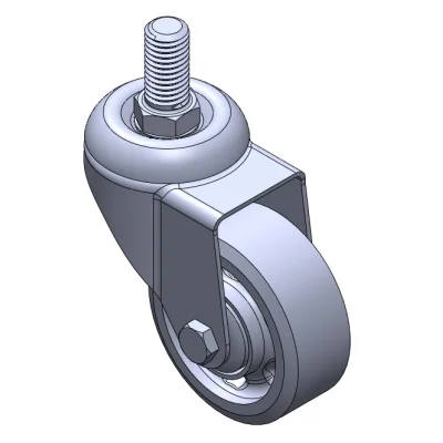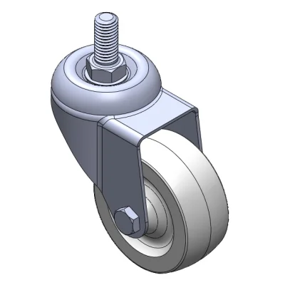 Swivel Casters, Threaded Stem Stamping Fork—1/2"-12 UNC; surface vibration resistant, Mounting Type - Top Plate; thermoplastic Wheel Center and rim; white; Plain Bearings.