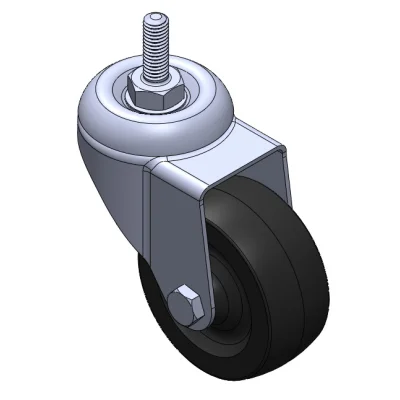 Swivel Casters, Threaded Stem Stamping Fork—3/8"-16 thread; surface vibration resistant, Mounting Type - Top Plate; thermoplastic Wheel Center and rim; black; Plain Bearings.