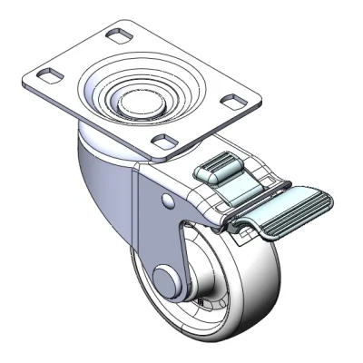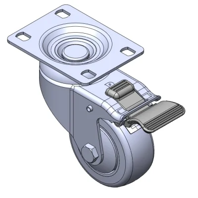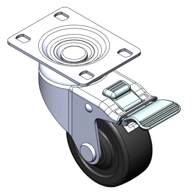 Equipped with double-brake locking Casters. Riveted and Stamping Top Plate legs—high-grade perforated design. Surface vibration resistant, Mounting Type - Top Plate. High-Quality Impact-Resistant Polypropylene Wheel Center, High-Quality Reinforced Polypropylene Rubber (TPR) Wheel Tread. Gray Bearing—Ball Bearings.