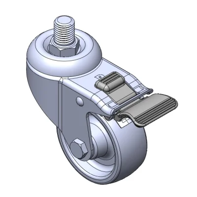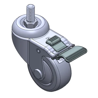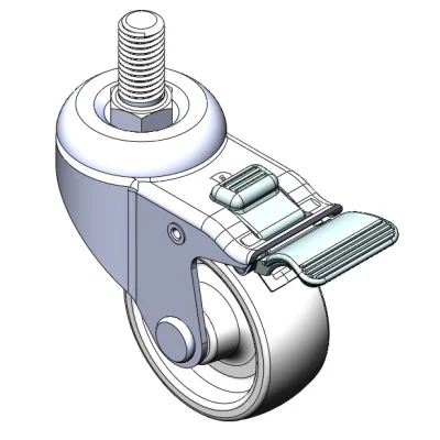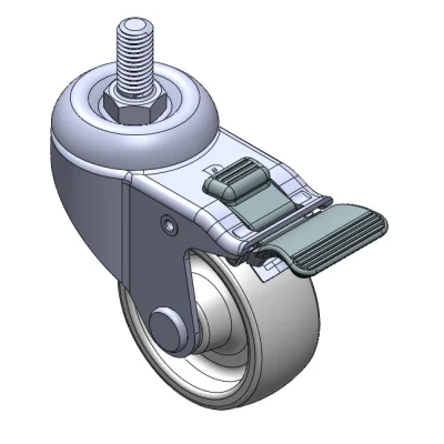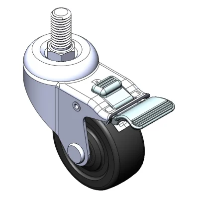 Equipped with double-brake With locking system Casters. Core-Riveted Stamping Fork—1/2"-12 teeth. Surface vibration resistant, Mounting Type - Threaded Stem. High-Quality Impact-Resistant Polypropylene Wheel Center, High-Quality Reinforced Polypropylene Rubber (TPR) Wheel Tread. Gray, Bearing—Ball Bearings.