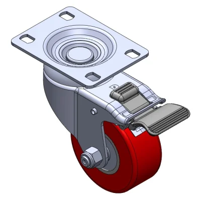 Equipped with double-brake locking Casters. Riveted and Stamping Top Plate legs with high-grade perforations. Surface vibration, Mounting Type - Top Plate. Cast Iron Wheel Centers with High Quality Polyurethane Wheel Treads. Red Bearing—Ball Bearings.