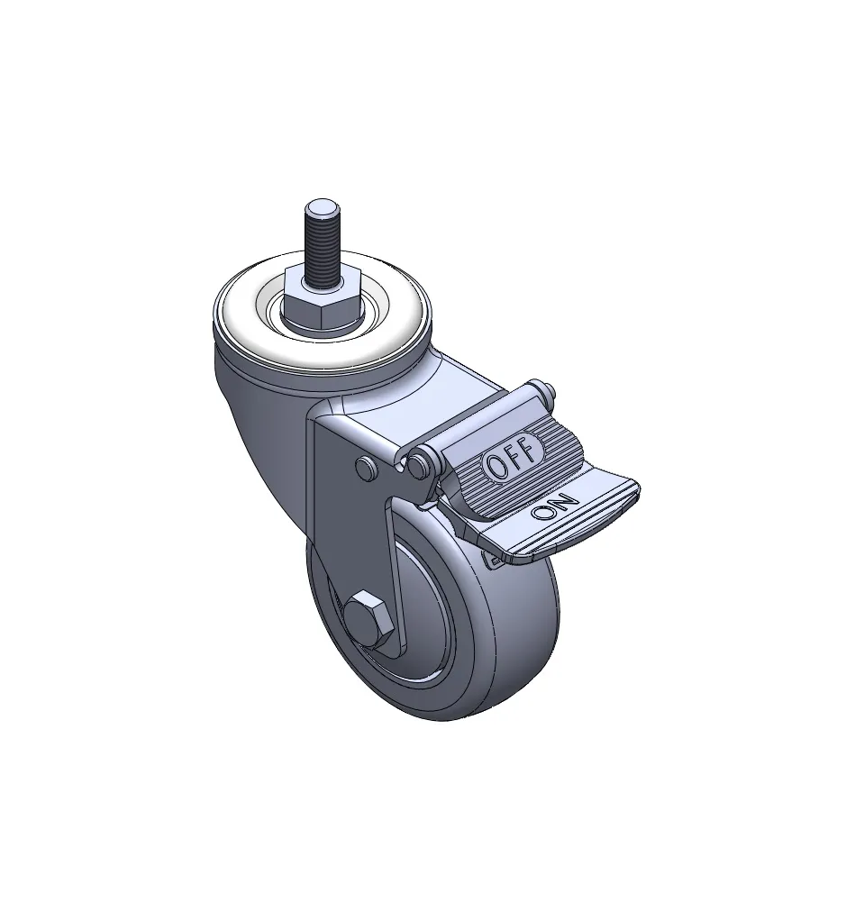 Casters with Total Brakes and With locking system. Threaded Stem Riveted Pressed Fork—3/8-16.