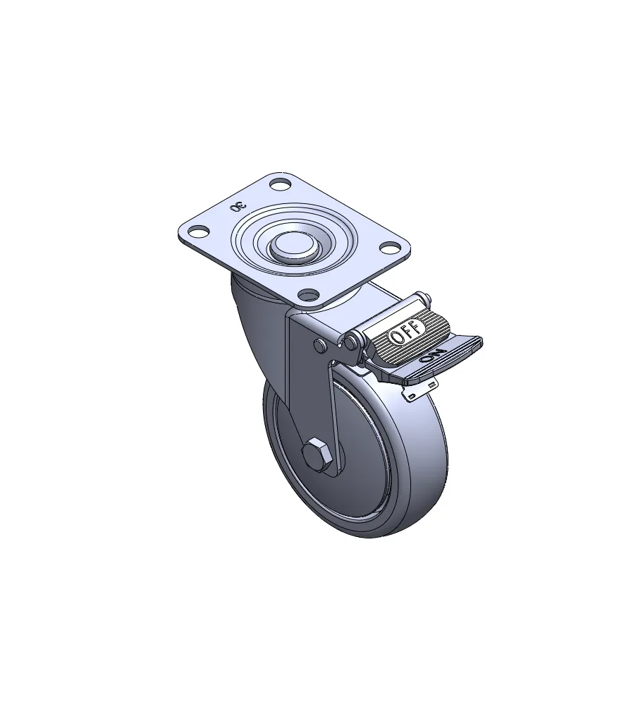 Casters with Side Brakes and With locking system. Premium Fork with Riveted Stamping Fork. Hole