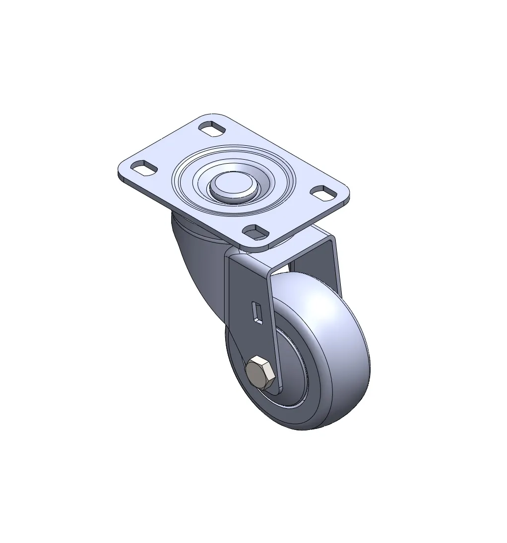 Casters with Side Brakes and With locking system. Base plate Riveted and Stamping with 72 x 53.5 mm (2-7/8" x 2-1/8") Bolt Hole Spacing. Zine-Plated, Mounting Type - Top Plate. Reinforced, impact-resistant polypropylene Wheel Center with High-Quality Reinforced Polypropylene Rubber (TPR) Wheel Tread. Dark gray, Bearing with Ball Bearings.