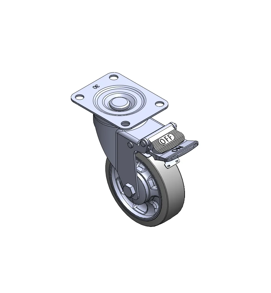 Casters with Total Brakes and a With locking system. Top Plate Riveted and Stamping - instrument Fork. Hole Zine-Plated, Mounting Type - Top Plate. Reinforced, impact-resistant polypropylene Wheel Center with High-Quality Reinforced Polypropylene Rubber (TPR) Wheel Tread. Dark gray, Bearing - Ball Bearings.