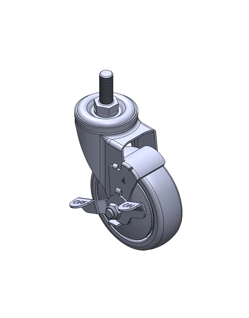 Casters with Side Brakes and With locking system. Threaded Stem Riveted Pressed Fork – 1/2-12 threads.