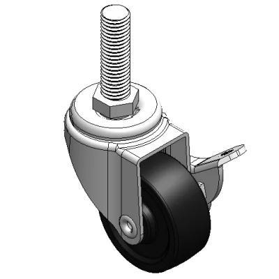 Equipped with side (wheel) brakes and a With locking system. Stamping, Threaded Stem feet—3/8"-16 teeth.