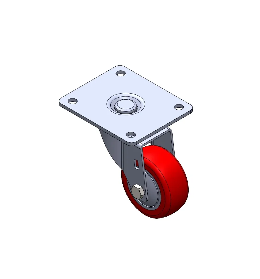 Swivel Caster with Riveted Fork and Stamping Fork - round hole Zine-Plated, Top Plate (4T) Mounting Type system High-Quality Impact-Resistant Polypropylene core, High-Quality Reinforced Polypropylene Rubber (TPR) Wheel Tread Red color, Bearing - Ball Bearing.