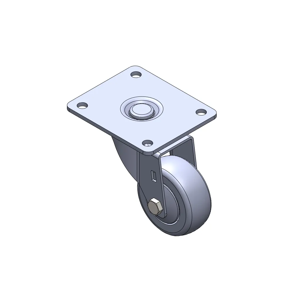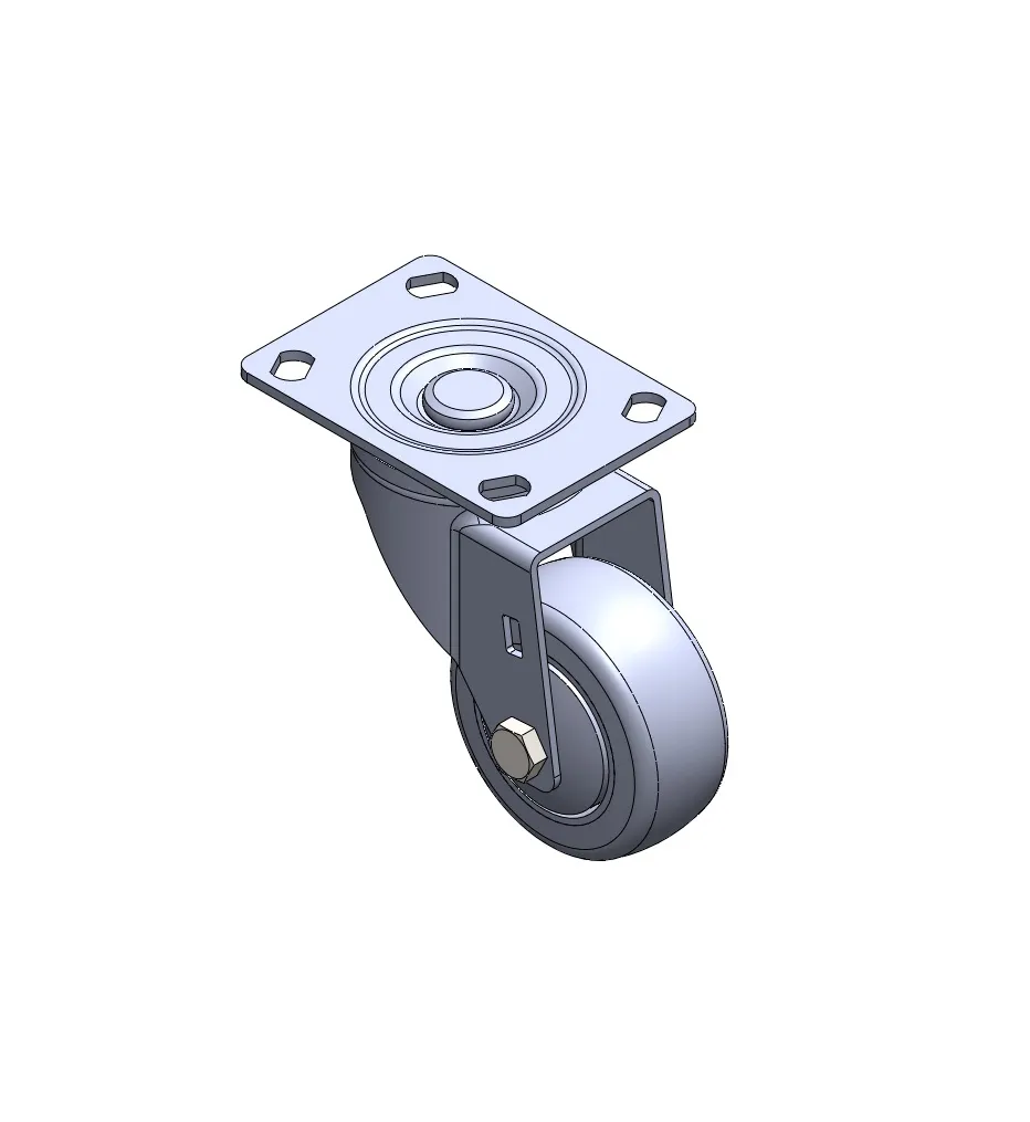 Swivel Caster with Riveted Fork and Stamping Fork - round hole Zine-Plated, Top Plateed (4T) Mounting Type system Reinforced, impact-resistant polypropylene core with High-Quality Reinforced Polypropylene Rubber (TPR) Wheel Tread Dark gray, Ball Bearings.