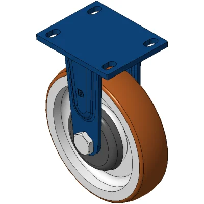 Rigid Caster with Welded Caster Fork Blue painted finish, Mounting Type - Top Plate, 110x75 Bolt Hole Spacing Cast Iron core with High Quality Polyurethane Wheel Tread, Cast Iron brown Bearings – Ball Bearings