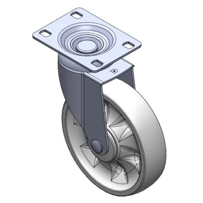 Swivel Casters, Riveted and Stamping Top Plate bracket—72 x 53.5 mm (2-7/8" x 2-1/8") Bolt Hole Spacing Surface vibration, Mounting Type - Top Plate device Reinforced thermoplastic Wheel Center and Wheel Tread White, Bearing—Ball Bearing.