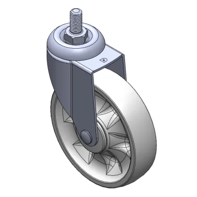 Swivel Casters, Threaded Stem Stamping Fork with Riveted teeth—M12-P1.75; surface vibration, Mounting Type - Threaded Stem device; reinforced thermoplastic Wheel Center and Wheel Tread; white; Bearing—Ball Bearings.