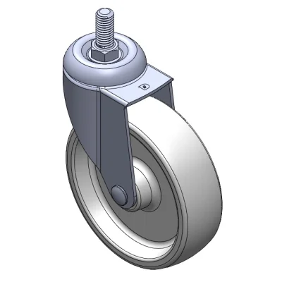 Swivel Casters, Threaded Stem Stamping Fork—1/2"-12 UNC; surface vibration protection, Mounting Type - Threaded Stem; thermoplastic Wheel Center and rim; white; Plain Bearings.
