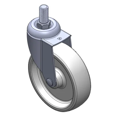 Swivel Casters, Threaded Stem Stamping Fork—5/8"-11 teeth; surface vibration resistant, Mounting Type - Threaded Stem; thermoplastic Wheel Center and rim; white; Plain Bearings.