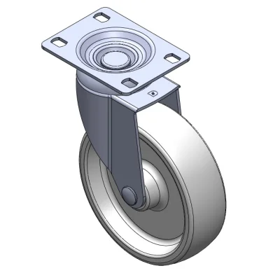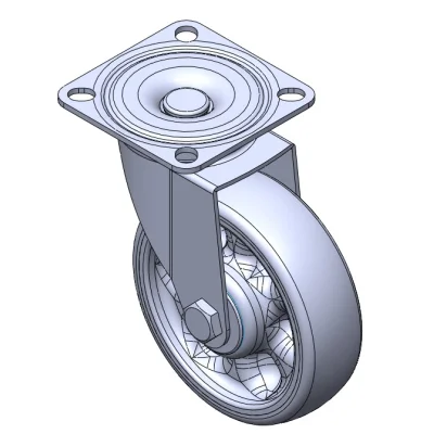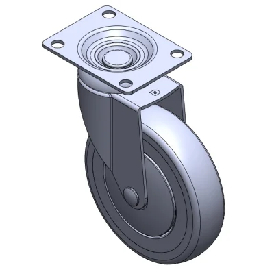 Swivel Casters, Single Bolthole Stamping Fork—hollow Ø10.2 hole; surface vibration, Mounting Type - Top Plate device; impact-resistant polypropylene Wheel Center, High-Quality Reinforced Polypropylene Rubber (TPR) Wheel Tread; gray, Bearing—Ball Bearings.