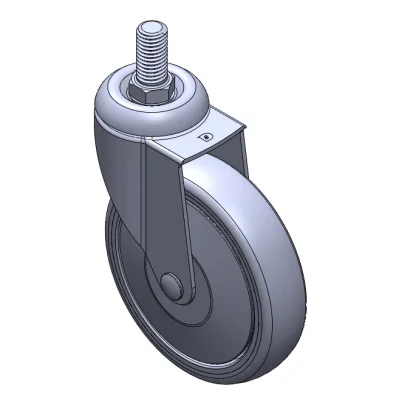 Adjustable Casters, Threaded Stem Stamping Fork—1/2"-12 teeth; surface vibration resistant, Mounting Type - Threaded Stem; impact-resistant polypropylene Wheel Center, High-Quality Reinforced Polypropylene Rubber (TPR) Wheel Tread; gray, Plain Bearings.