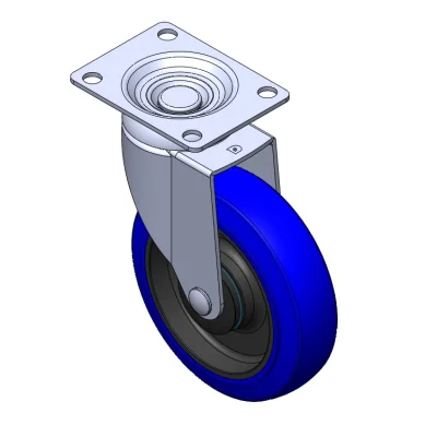 Swivel Casters, Riveted and Stamping Top Plate bracket—72 x 53.5 mm (2-7/8" x 2-1/8") Bolt Hole Spacing Surface vibration, Mounting Type - Top Plate device High-Quality Impact-Resistant Polypropylene Wheel Center, High-Quality Reinforced Polypropylene Rubber (TPR) Wheel Tread Blue, Bearing—Ball Bearing.