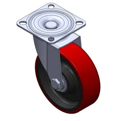 Swivel Casters, Riveted and Stamping Top Plate; surface vibration, Mounting Type - Top Plate device; cast iron Wheel Center, High Quality Polyurethane Wheel Tread; red, Bearing—Ball Bearings.
