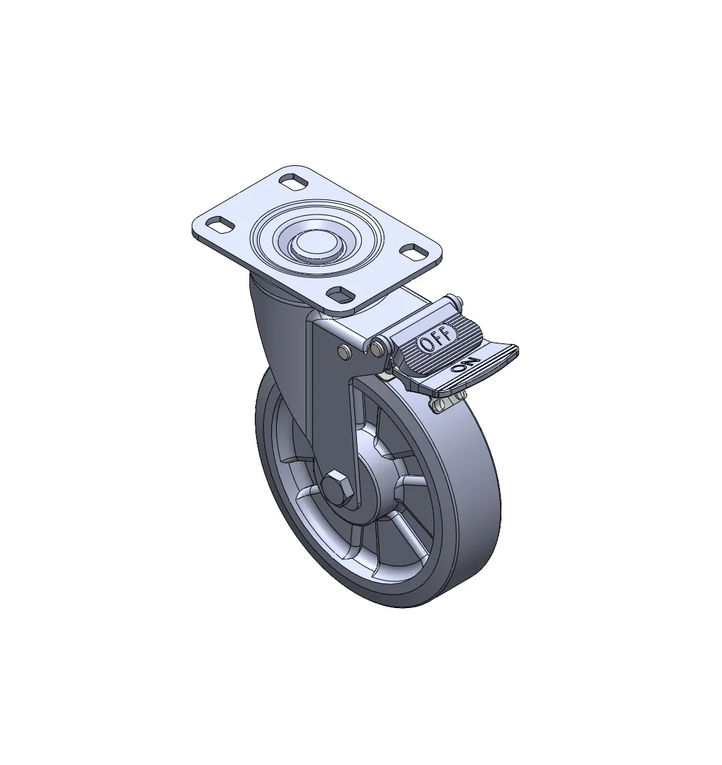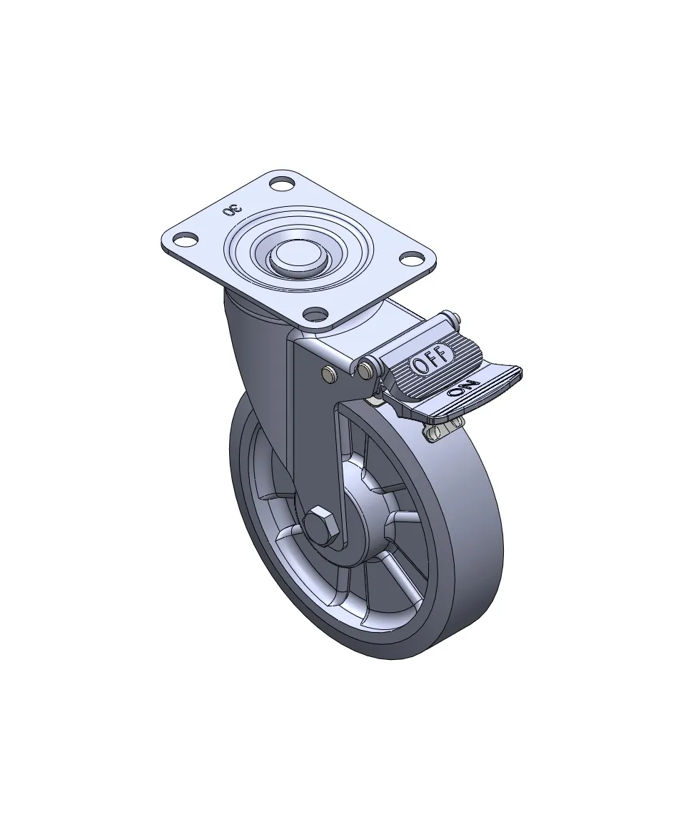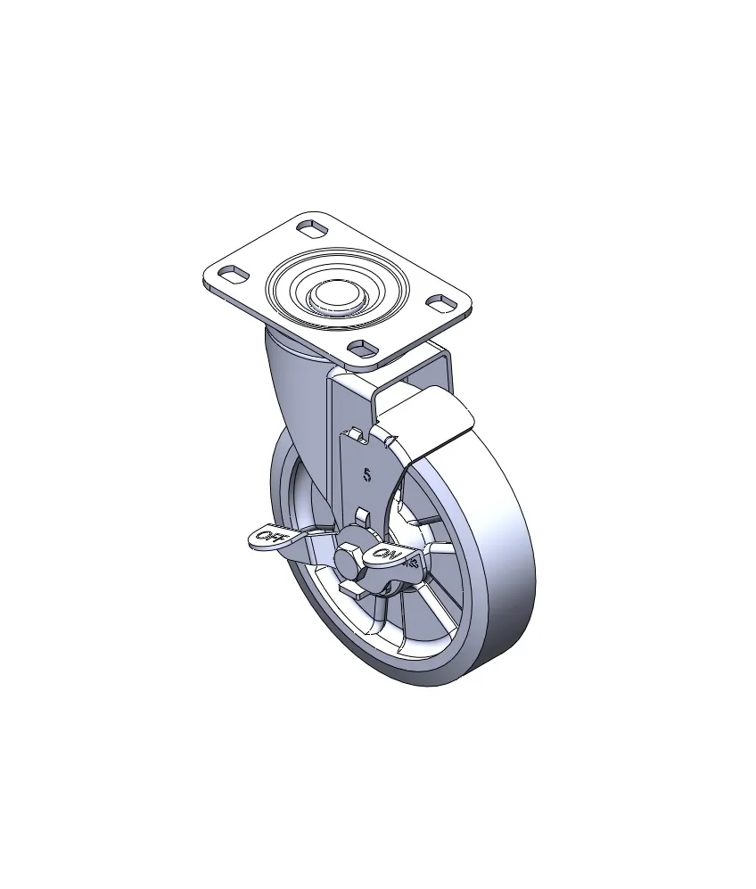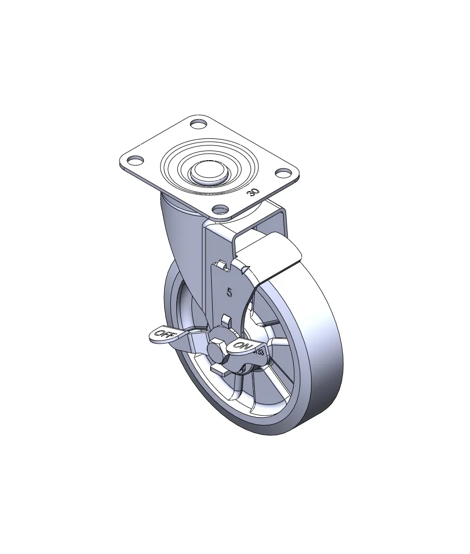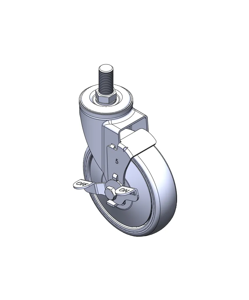 Casters with Side Brakes and With locking system. Stamping, Riveted Fork with 5/8-11 thread.