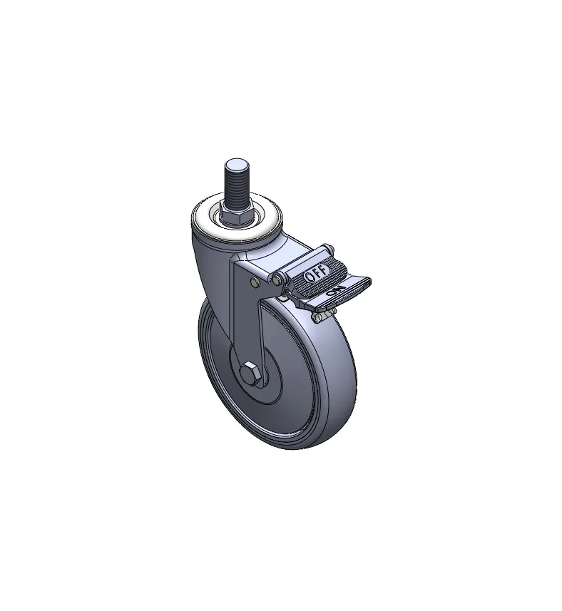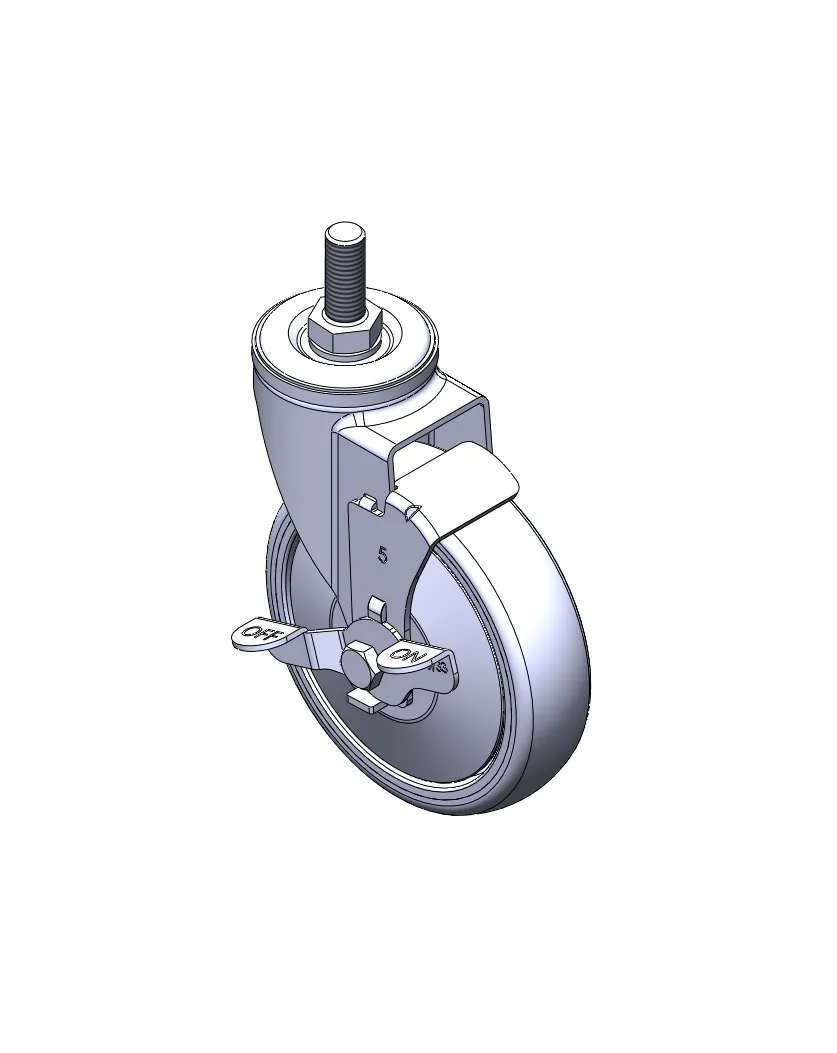 Casters with Side Brakes and With locking system. Threaded Stem Riveted Pressed Fork – 1/2-12 threads.