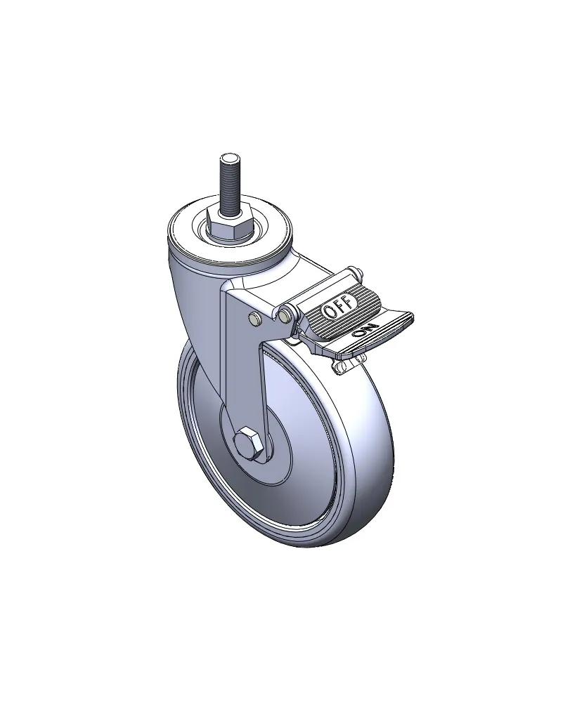 Casters with Side Brakes and With locking system. Threaded Stem Riveted Pressed Fork with 3/8-16 threads.