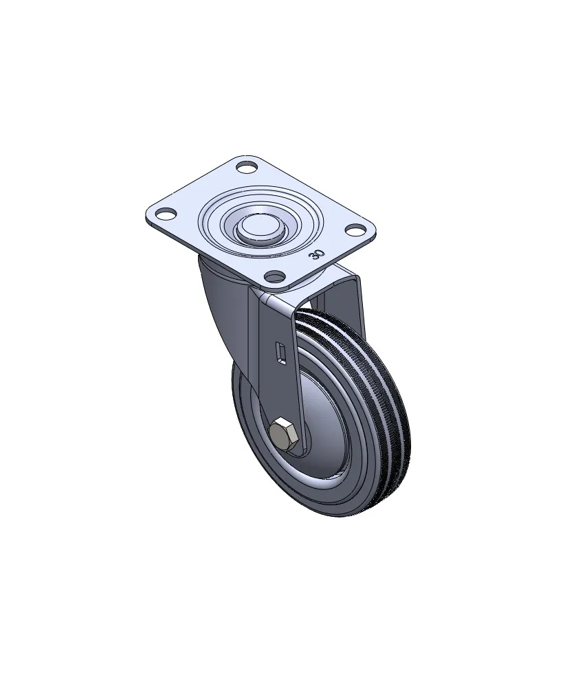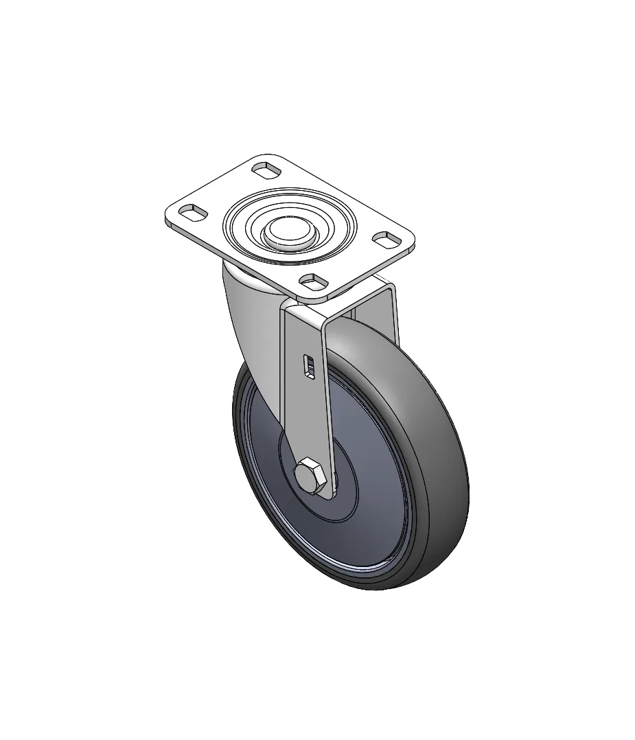 Swivel Caster with Riveted Fork and Stamping Fork—75 x 45 mm (3" x 1-3/4") Bolt Hole Spacing Zine-Plated, Mounting Type - Top Plate High-quality Impact Resistance Polypropylene core with High-Quality Thermoplastic Rubber (TPR) tread Dark gray, Bearing—Ball Bearing.