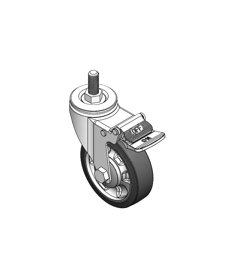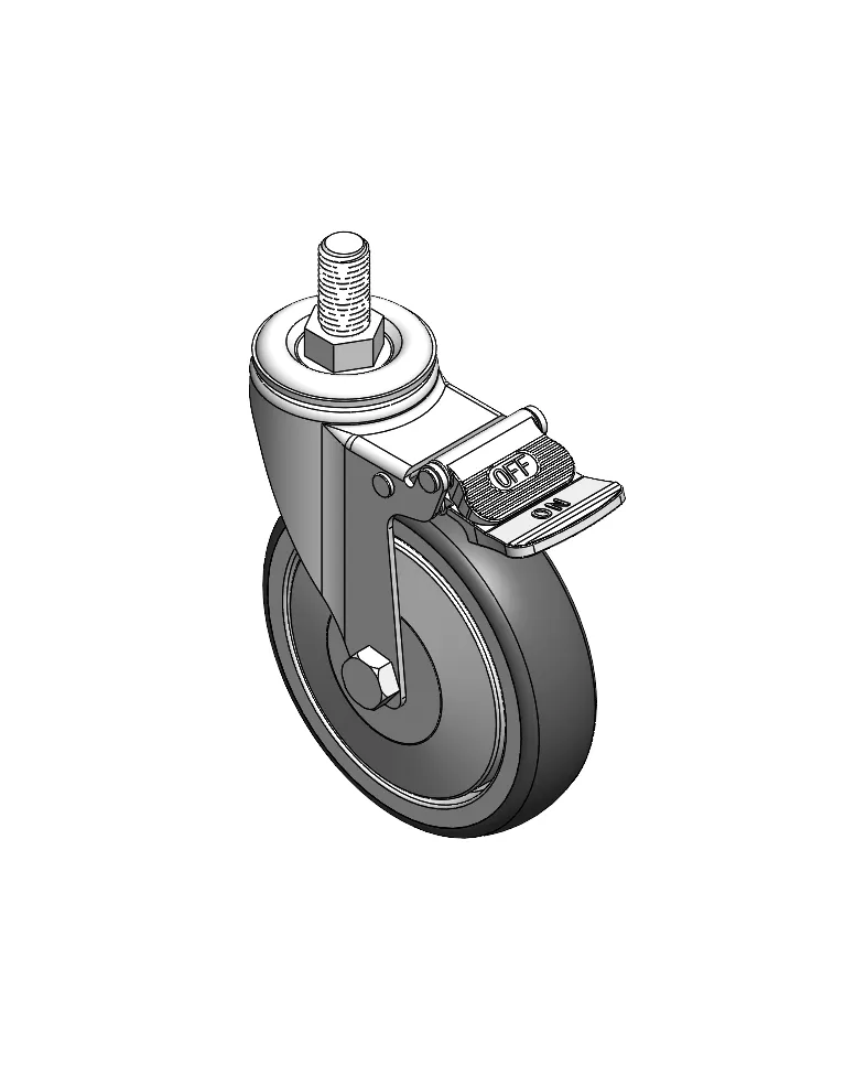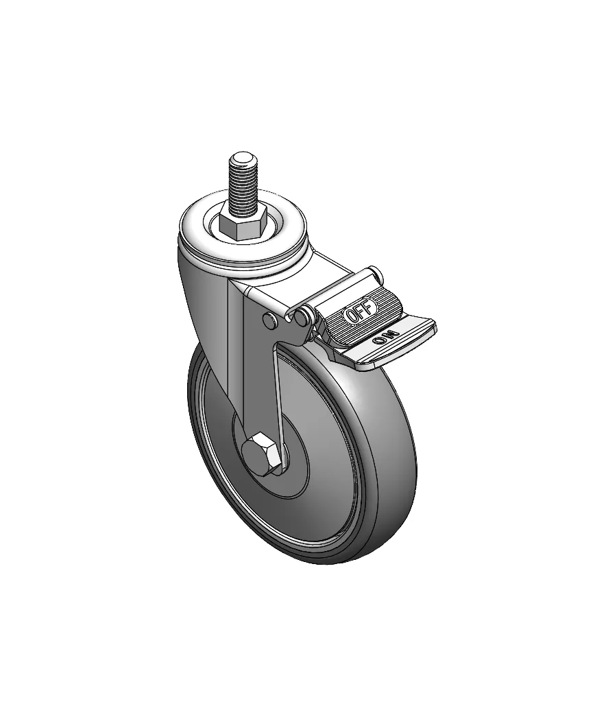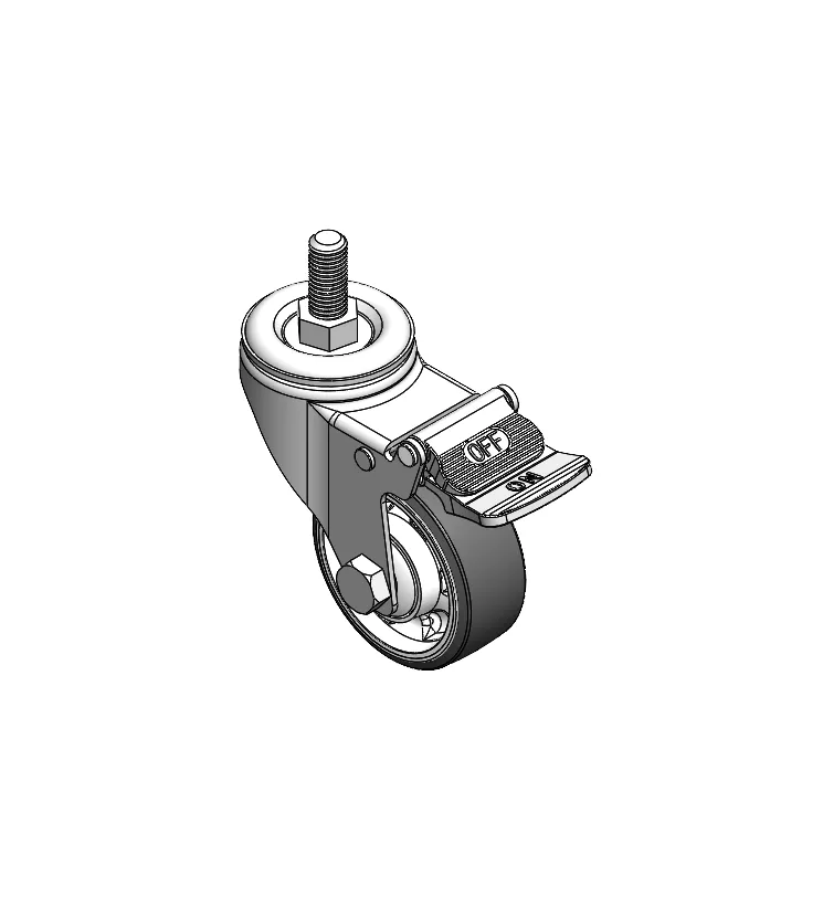 Casters with a Total Brake and With locking system. Threaded Stem Riveted Pressed Fork—M12- P1.75