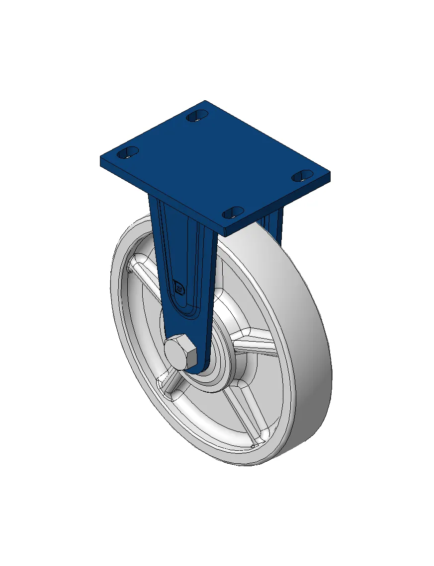 Rigid Caster, Welded Caster Fork, blue-painted finish
