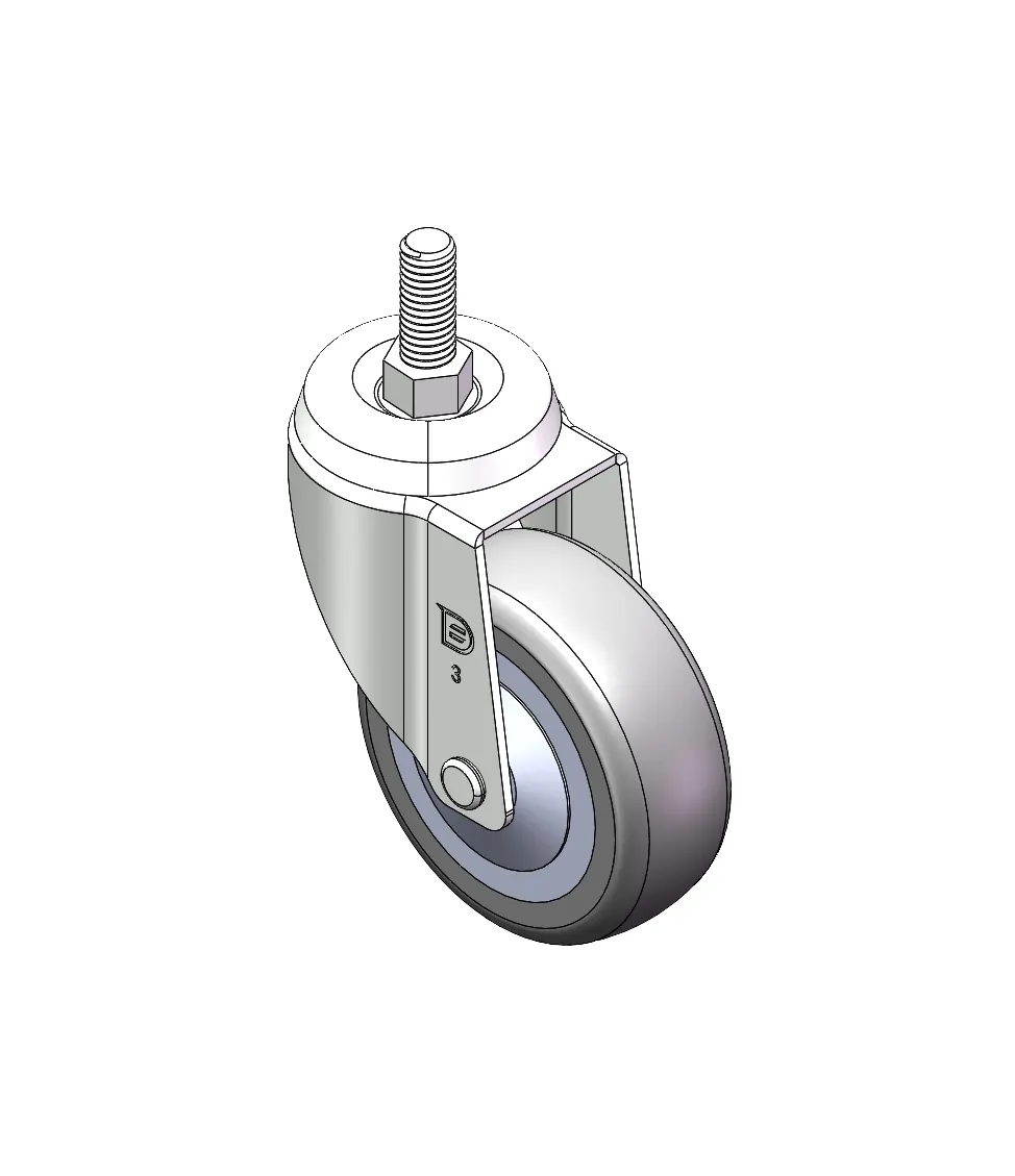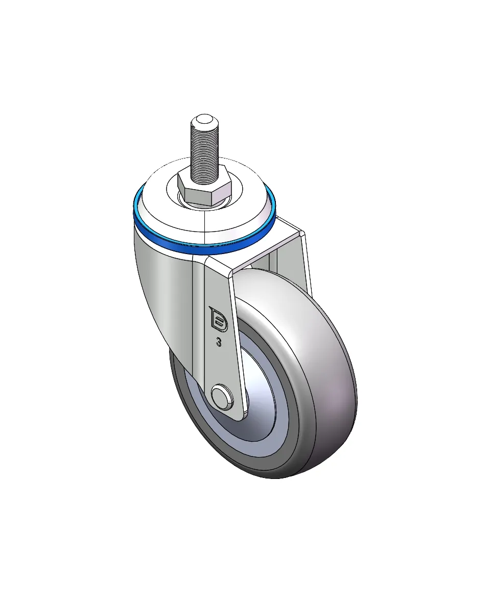 Swivel Caster, thread-Riveted Stamping Fork—M10-P1.5 Extended control lever surface, Mounting Type - Threaded Stem device + dust ring High-quality Impact Resistance Polypropylene Wheel Center,High-Quality Thermoplastic Rubber (TPR) Wheel Tread Pearl-colored dark gray, Bearing—Ball Bearing.