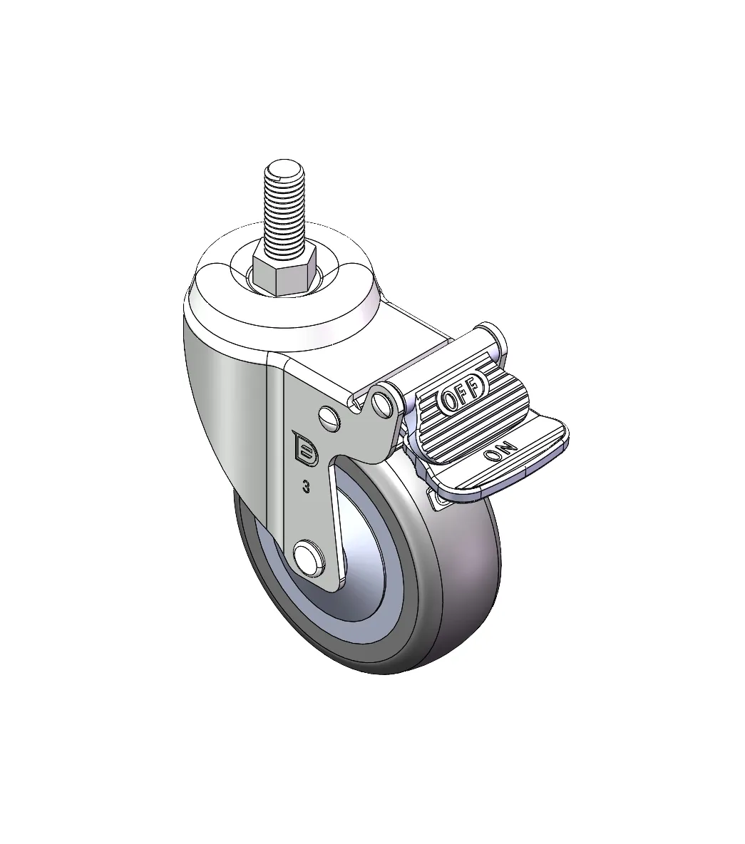 Casters with a Total Brake and With locking system. Threaded Stem Riveted Pressed Fork—3/8"-16"