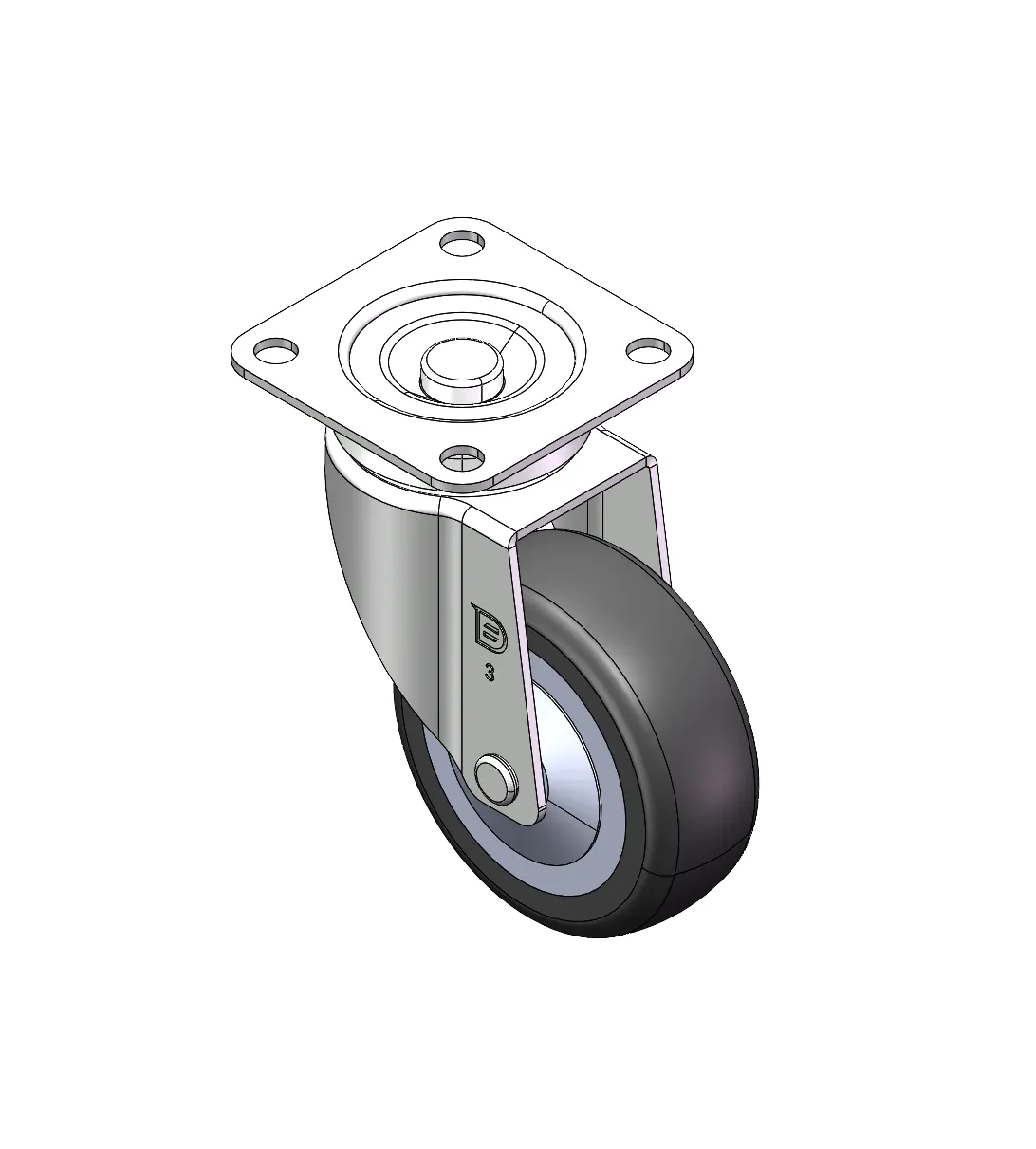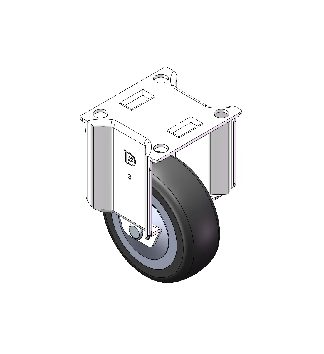Rigid castor, Stamping Fabricated Caster Fork - medical hole Surface Zine-Plated, Top Plate Mounting Type High-quality Impact Resistance Polypropylene Wheel Center,High-Quality Thermoplastic Rubber (TPR) Wheel Tread Pearlescent dark gray, Bearing - Ball Bearing.