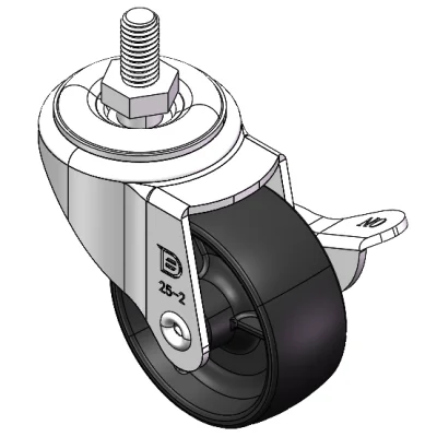 Equipped with side (wheel) brakes and a With locking system for the Casters. Stamping, Threaded Stem feet with Riveted cores—M8-P1.25