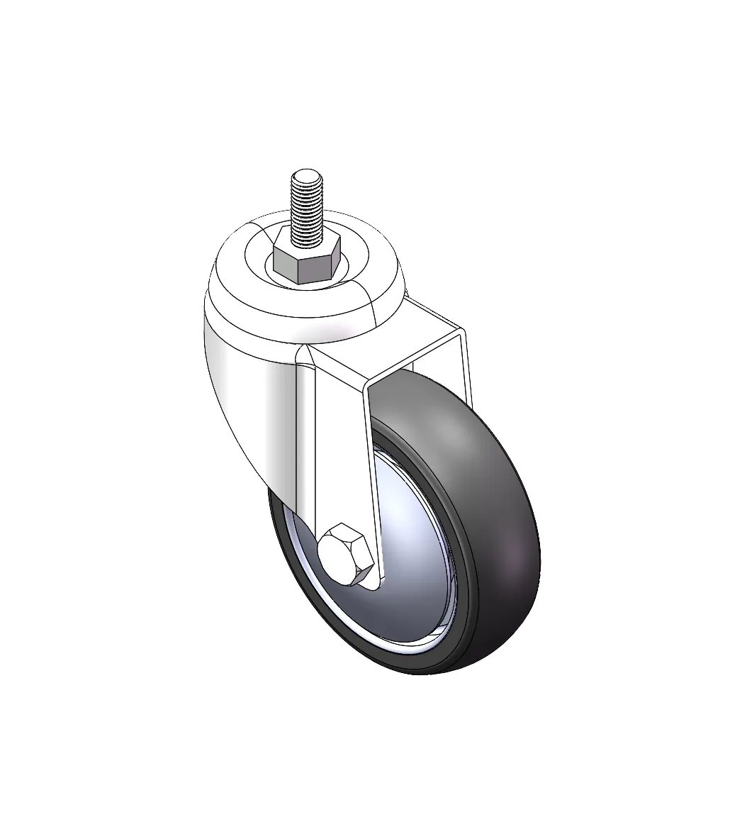 Side Brake Locking system. Threaded Riveted Stamping Fork - M12-P1.75 Extended control lever surface, Mounting Type - Threaded Stem device Reinforced Polypropylene, High-Quality Resilient Rubber Wheel Tread Wheels - Plain Bearing