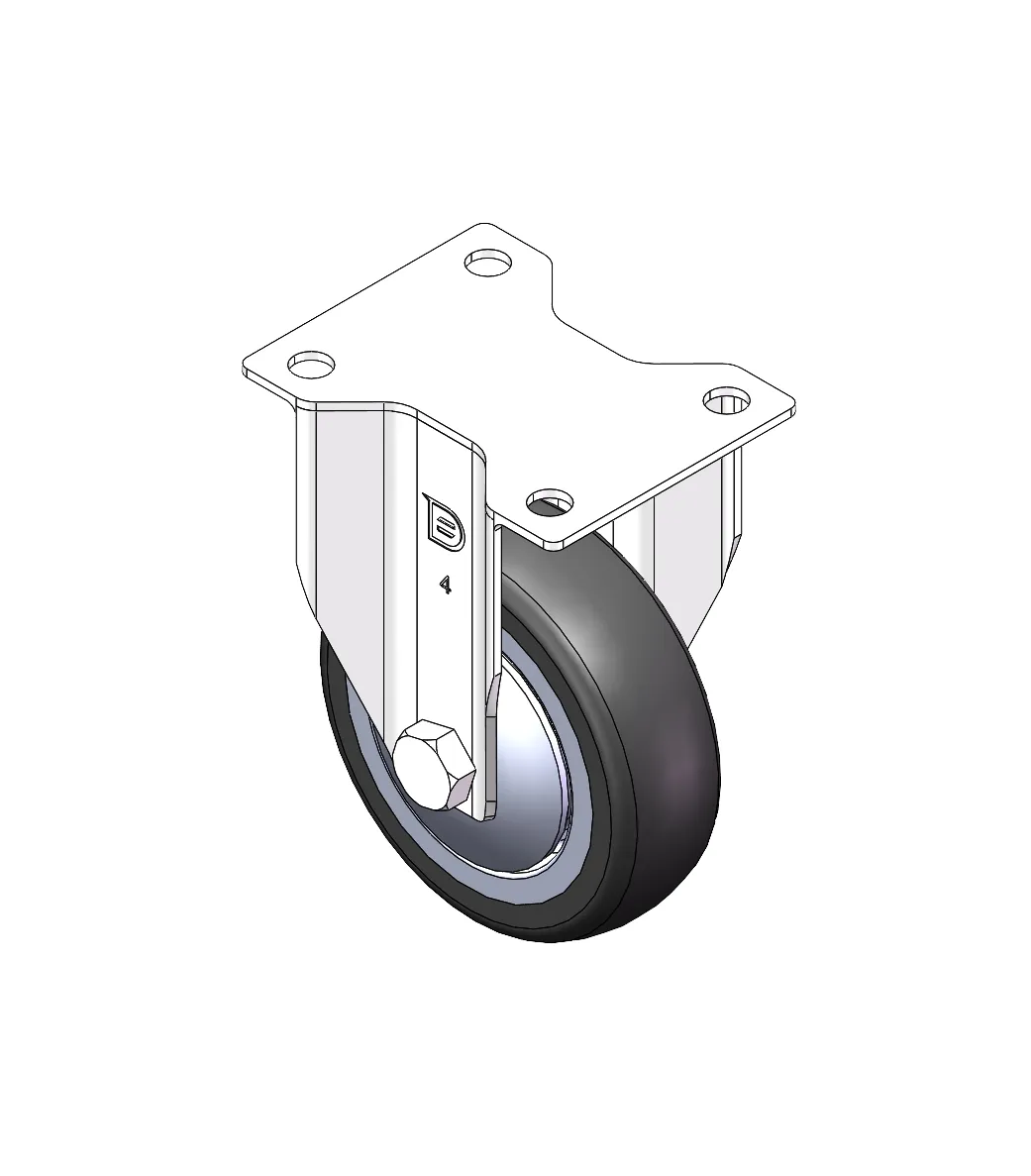 Rigid castor, Stamping Fabricated Caster Fork - medical hole Surface Zine-Plated, Top Plate Mounting Type High-quality Impact Resistance Polypropylene Wheel Center,High-Quality Thermoplastic Rubber (TPR) Wheel Tread Pearl grey, Bearing - Ball Bearing.