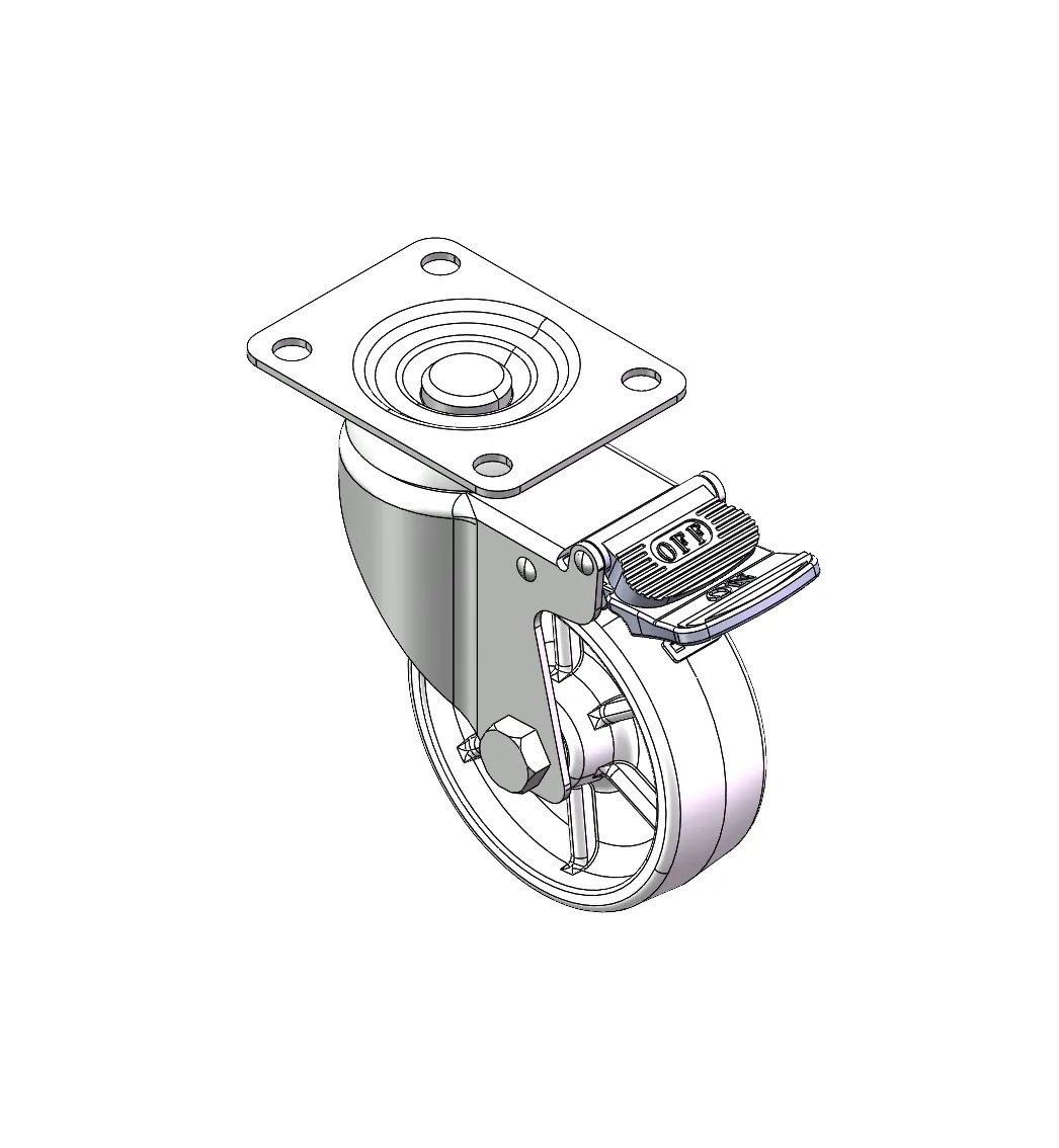 Rigid Caster, Stamping Fabricated Caster Fork - medical hole Extended control lever surface, Mounting Type - Top Plate Reinforced Polypropylene and Wheel Tread Transparent, wheel - Plain Bearing