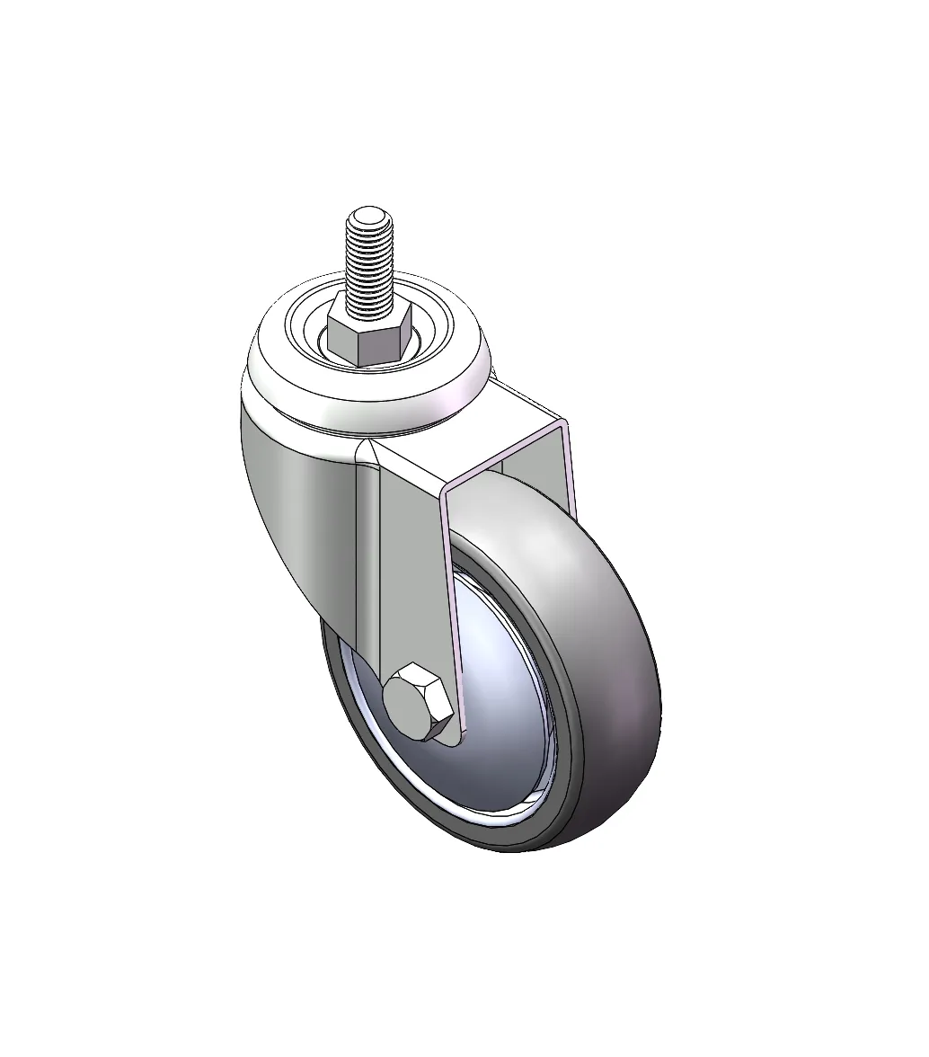 Swivel Caster, thread-Riveted Stamping Fork—M12-P1.75 Extended control lever surface, Mounting Type - Threaded Stem High-quality Impact Resistance Polypropylene Wheel Center,High-Quality Thermoplastic Rubber (TPR) Wheel Tread Pearl-colored dark gray, Bearing—Ball Bearing.