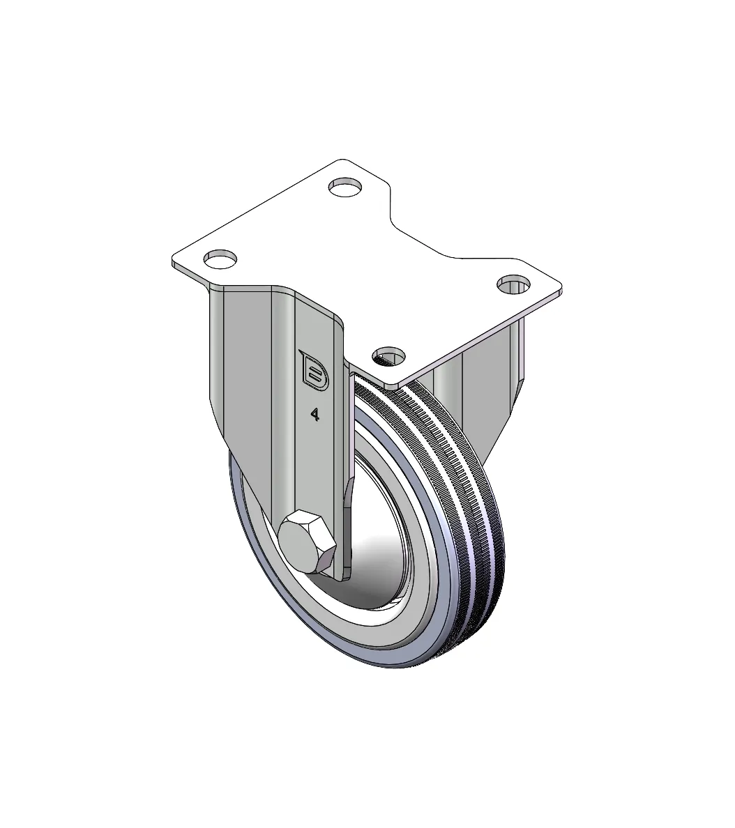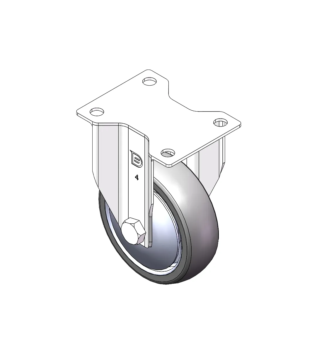 Rigid castor, Stamping Fabricated Caster Fork - medical hole Surface Zine-Plated, Top Plate Mounting Type High-quality Impact Resistance Polypropylene Wheel Center,High-Quality Thermoplastic Rubber (TPR) Wheel Tread Pearl grey, Bearing - Ball Bearing.