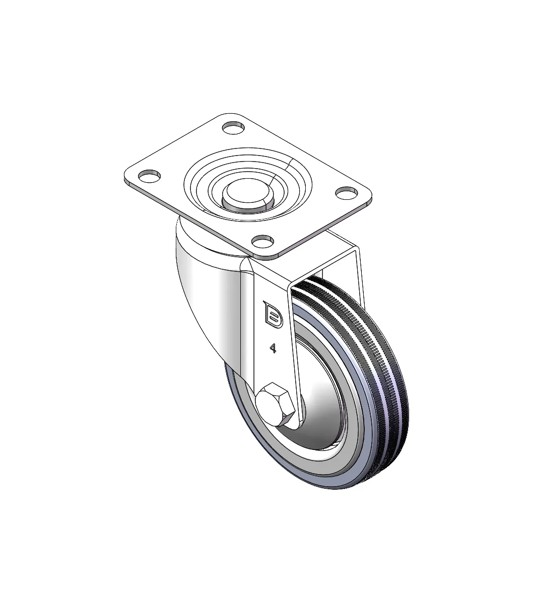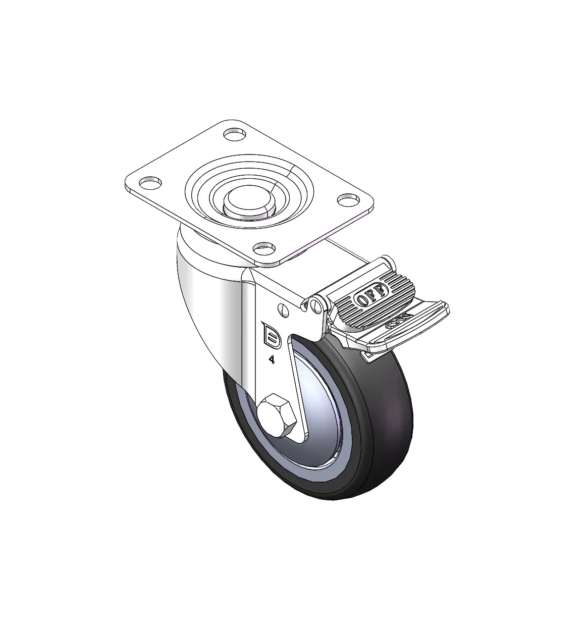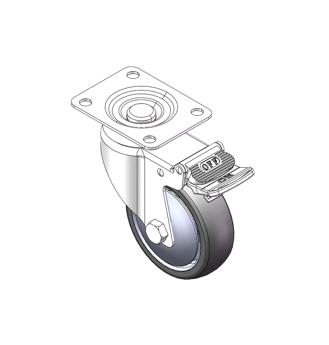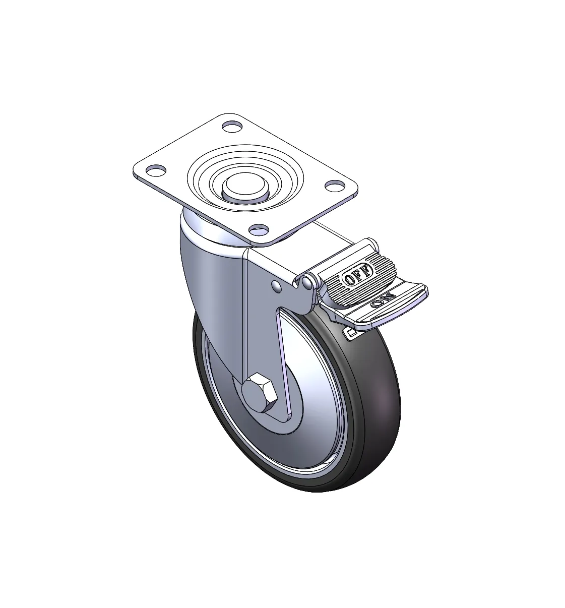 Castors with Total Brake locking system. Riveted Stamping Fork - medical holes Surface Zine-Plated, Top Plate Mounting Type Impact resistant High-quality Impact Resistance Polypropylene Wheel Center,High-Quality Thermoplastic Rubber (TPR) Wheel Tread Pearl grey, Bearing - Ball Bearing.