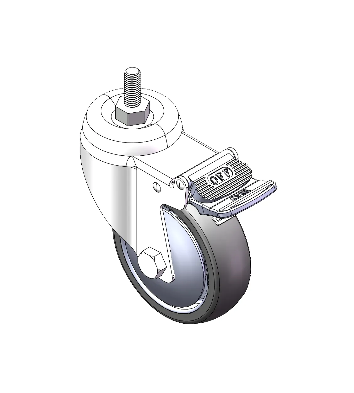 Casters with a Total Brake and With locking system. Threaded Stem Riveted Pressed Fork—3/8"-16"