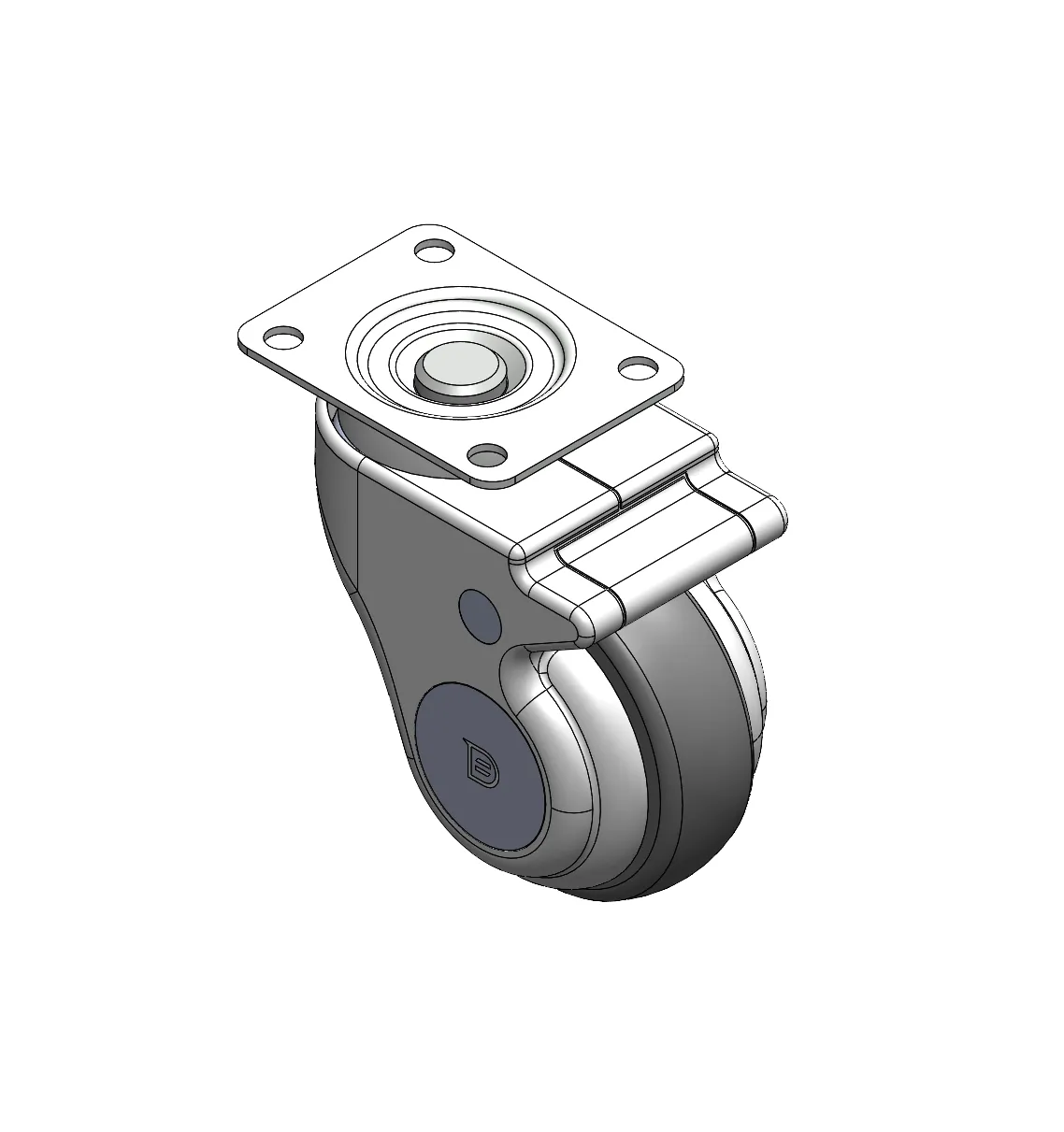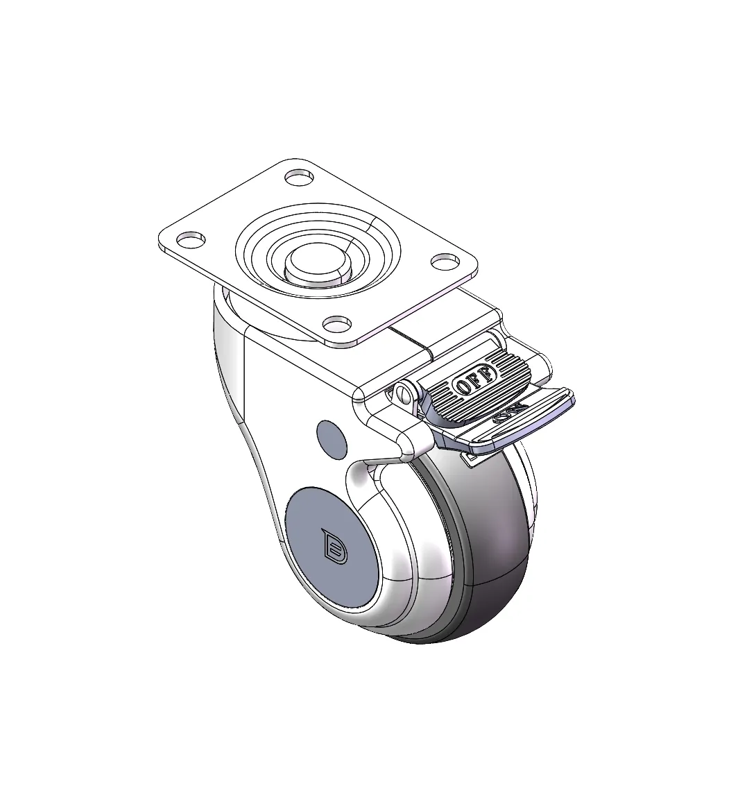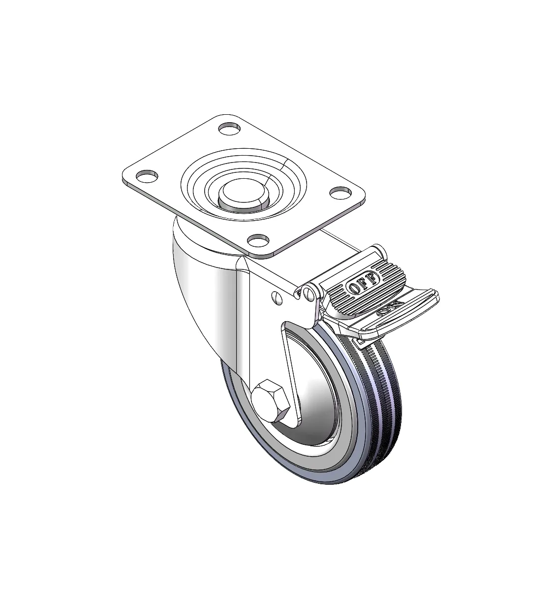 Castors with Total Brake locking system. Riveted Stamping Fork - medical holes Surface Zine-Plated, Top Plate Mounting Type Impact resistant High-quality Impact Resistance Polypropylene Wheel Center,High-Quality Thermoplastic Rubber (TPR) Wheel Tread Pearl grey, Bearing - Ball Bearing.
