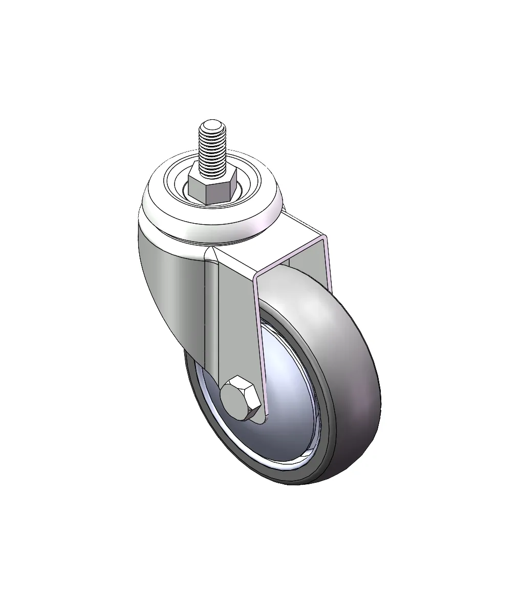Swivel Caster, thread-Riveted Stamping Fork—M12-P1.75 Extended control lever surface, Mounting Type - Threaded Stem device + thread protection sleeve High-quality Impact Resistance Polypropylene Wheel Center,High-Quality Thermoplastic Rubber (TPR) Wheel Tread Pearl-colored dark gray, Bearing—Ball Bearing.