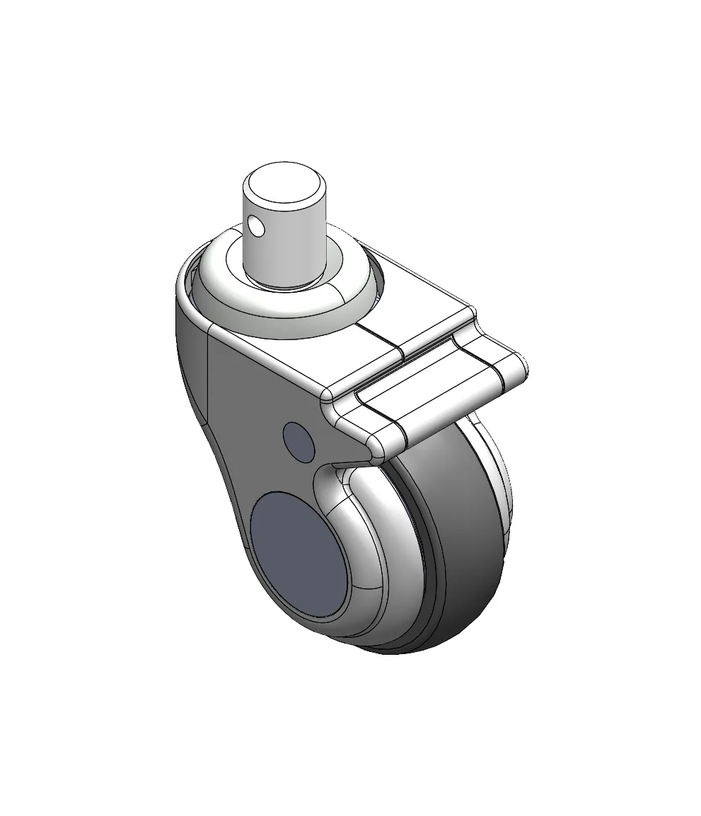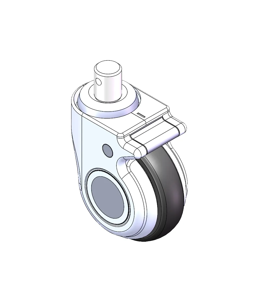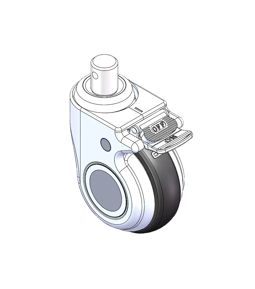 Castors with Total Brake Locking system. Stamped and Riveted feet - Ø28x30L Surface zinc-plated, stud Mounting Type, M8 hole High-quality Impact Resistance Polypropylene Wheel Center,High-Quality Thermoplastic Rubber (TPR) Wheel Tread Pearl-finish dark grey, Bearing - Ball Bearing.