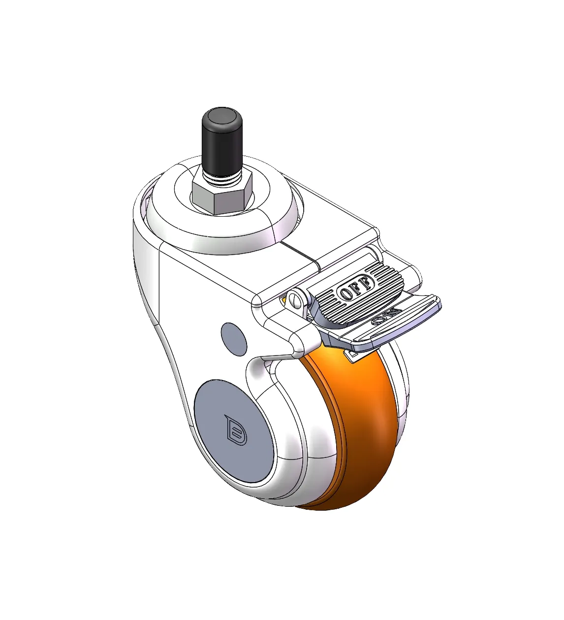 Equipped with a 90° fixed brake Caster, Riveted Fork with Fork and medical holes.