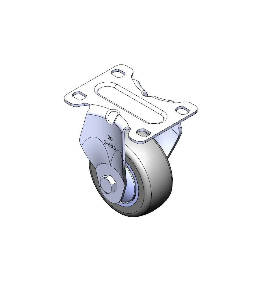 Rigid Caster with Stamping Fabricated Caster Fork and 75 x 45 mm (3" x 1-3/4") Bolt Hole Spacing. Zine-Plated, Mounting Type - Top Plate. Cast Iron core with High-Quality Resilient Rubber Wheel Tread. Bearing - Plain Bearing.