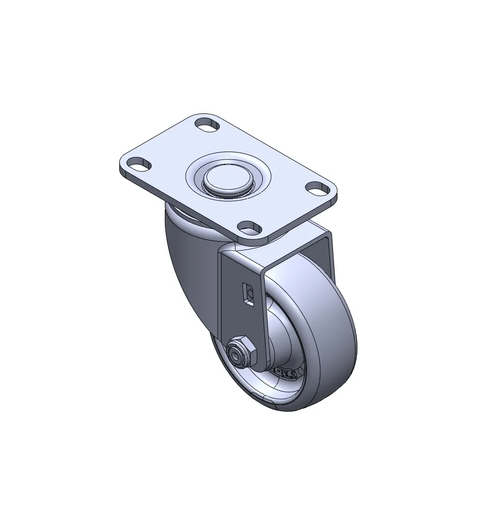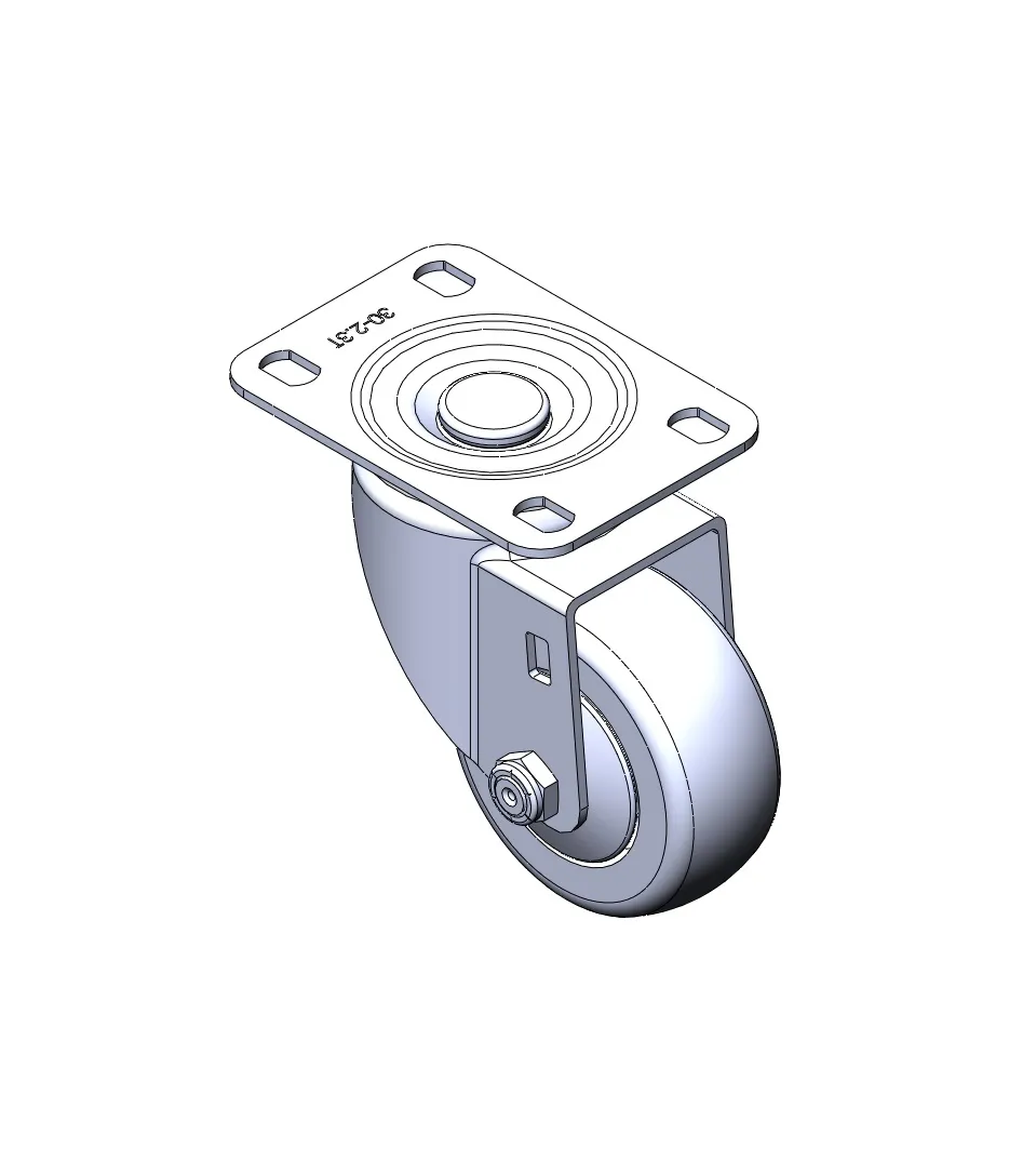 Swivel Caster with Riveted Fork and Stamping Fork – 75 x 45 mm (3" x 1-3/4") Bolt Hole Spacing Zine-Plated, Mounting Type - Top Plate Reinforced, impact-resistant polypropylene core with High-Quality Reinforced Polypropylene Rubber (TPR) Wheel Tread Dark gray, Bearing – Ball Bearings