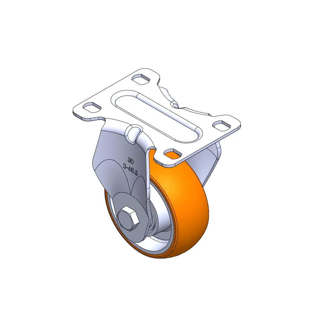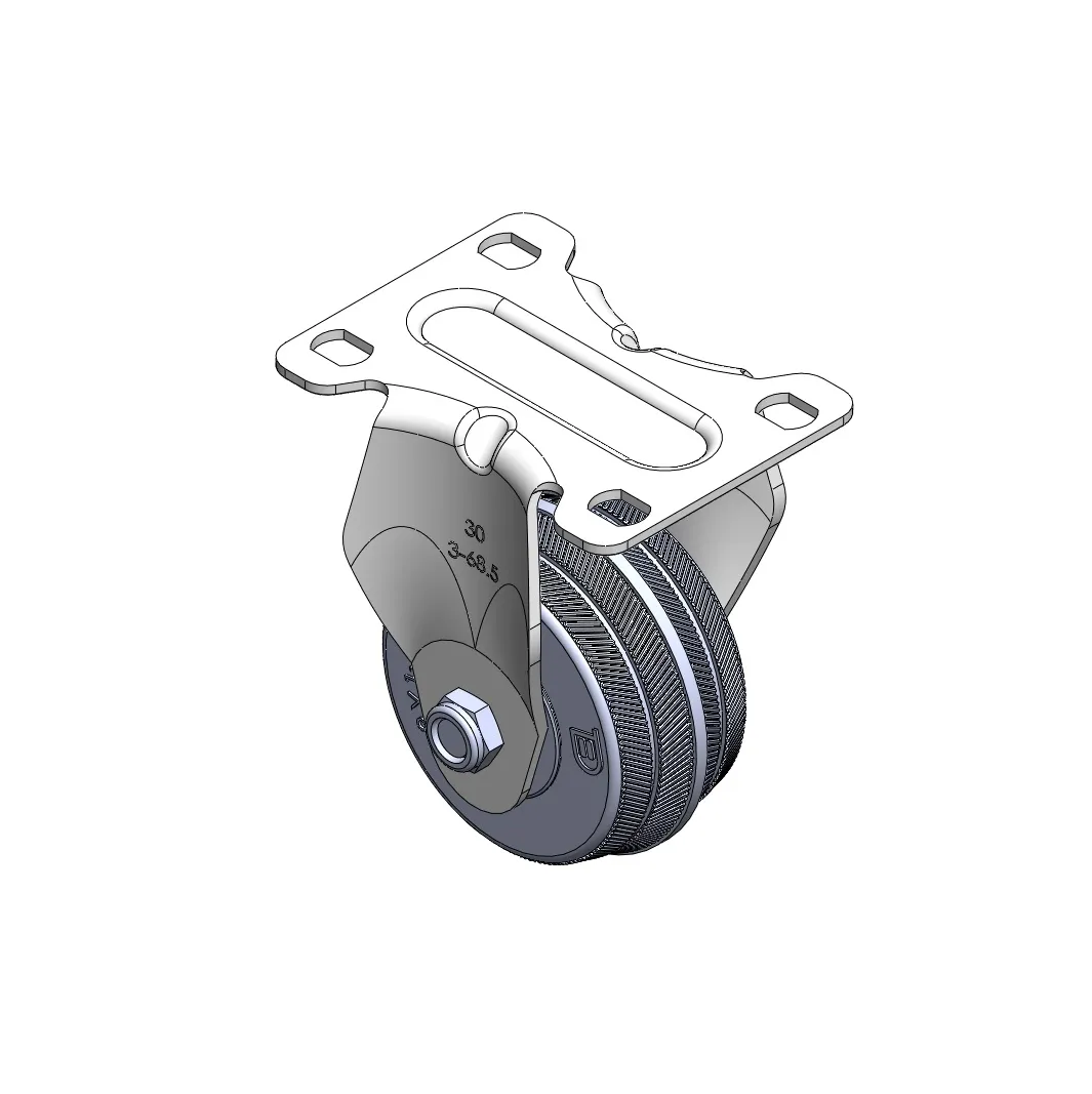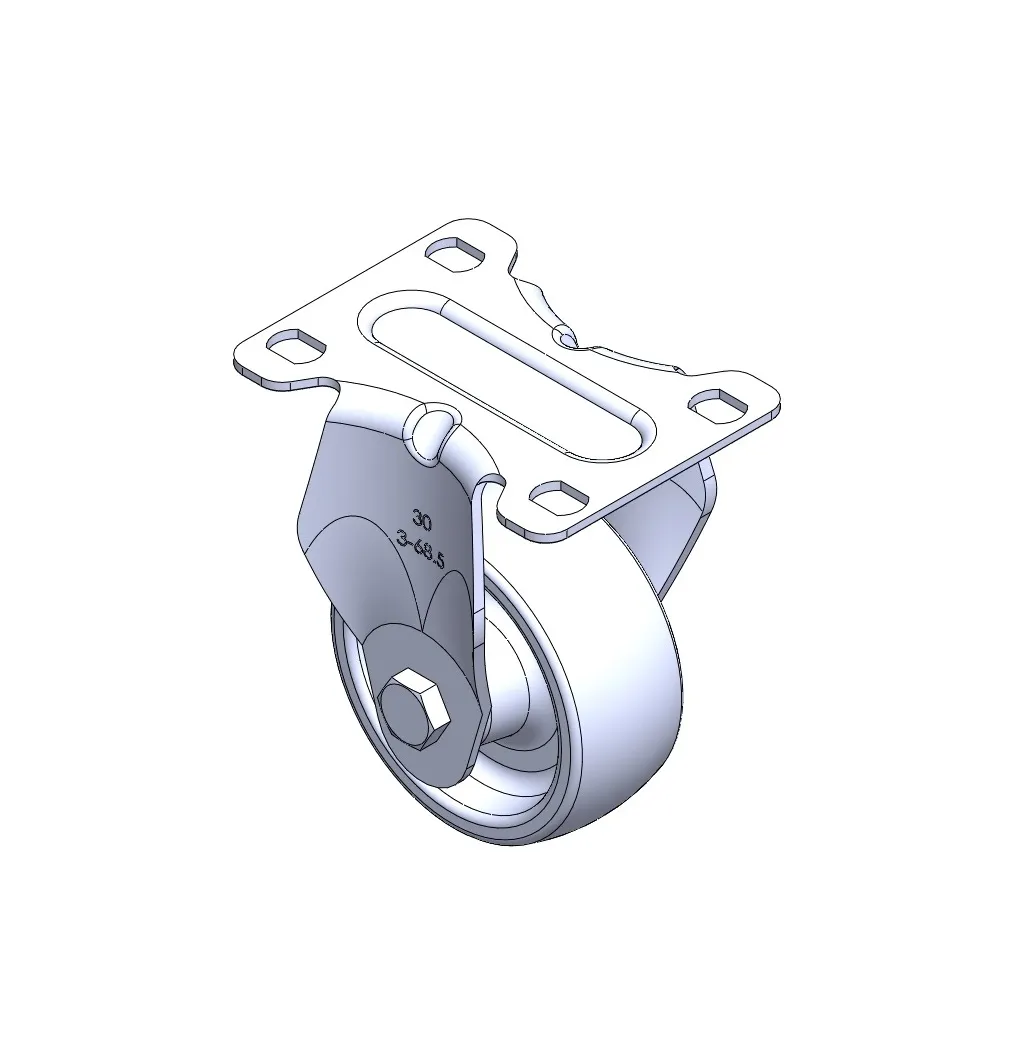 Rigid Caster with Stamping Fabricated Caster Fork and 75 x 45 mm (3" x 1-3/4") Bolt Hole Spacing. Zine-Plated, Mounting Type - Top Plate. Reinforced Polypropylene plastic core and Wheel Tread. Bearing - Plain Bearing.