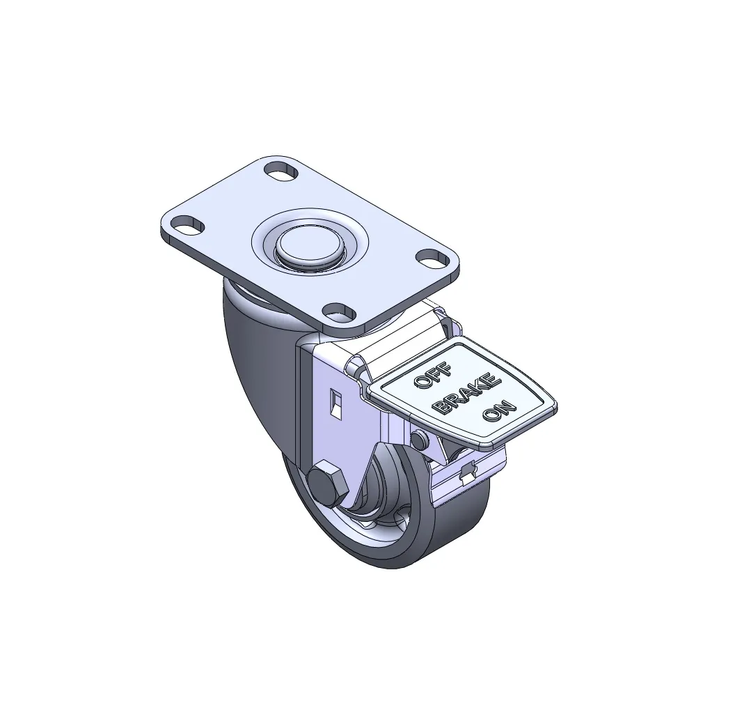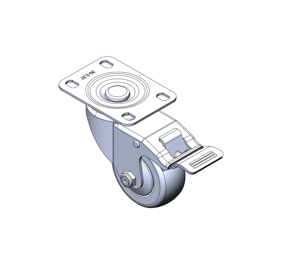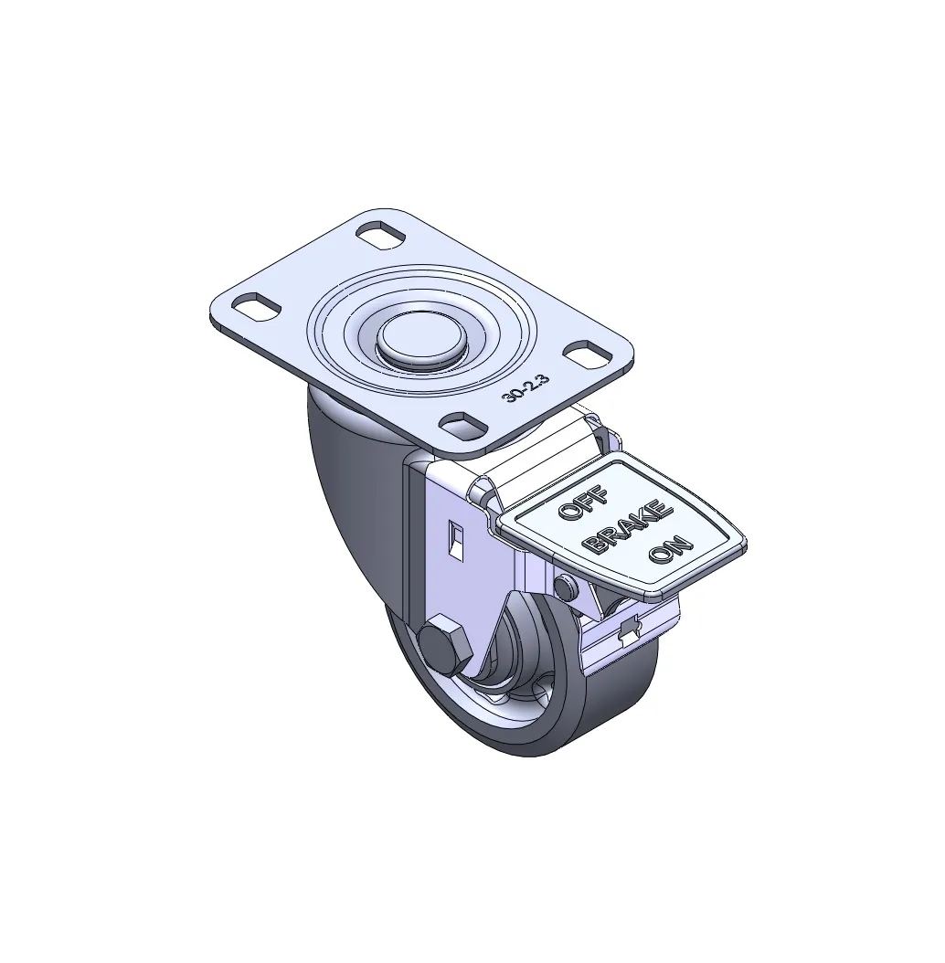 Casters with a Total Brake and With locking system. Premium Fork with Riveted Fork. Zine-Plated, Mounting Type - Top Plate. Reinforced, impact-resistant polypropylene Wheel Center with High-Quality Reinforced Polypropylene Rubber (TPR) Wheel Tread. Dark gray. Bearings: Ball Bearings.