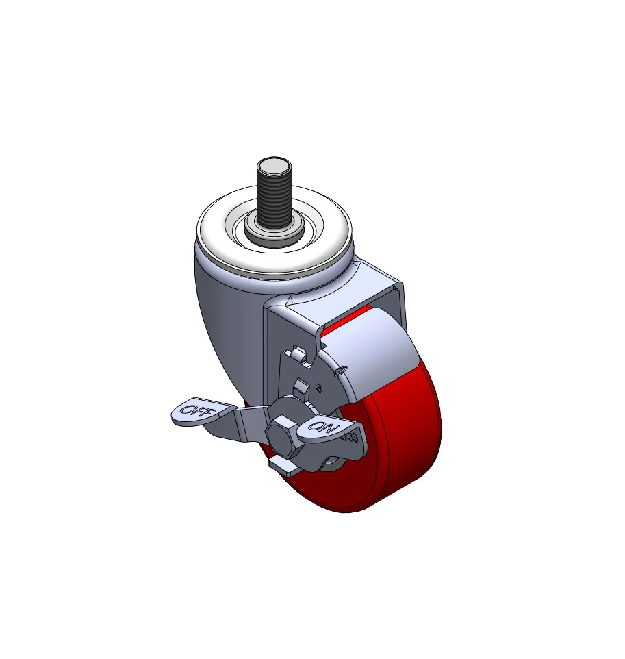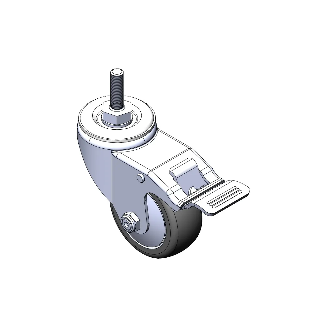 Casters with Side Brakes and With locking system. Threaded Stem Riveted Pressed Fork – 1/2-12 threads.
