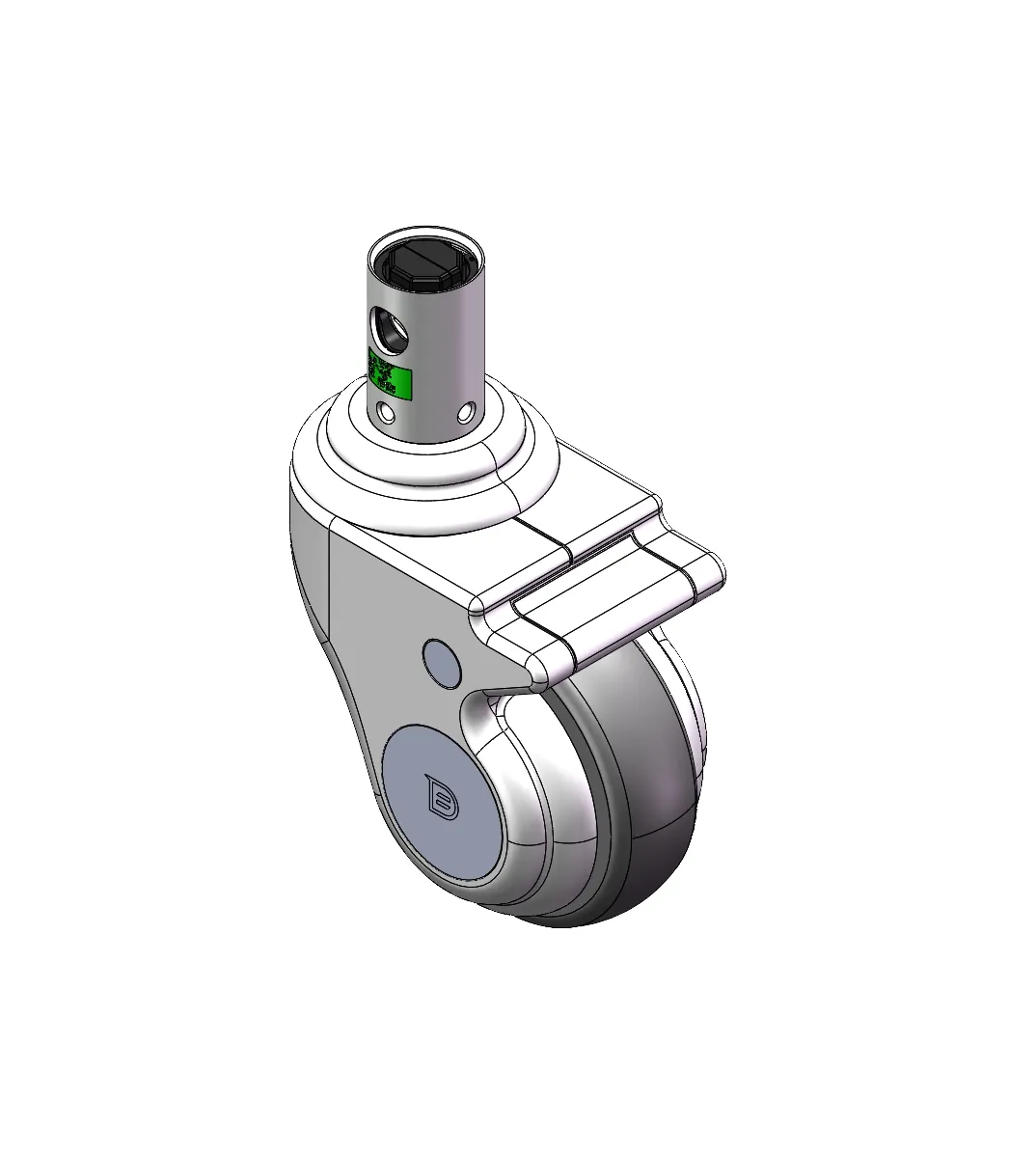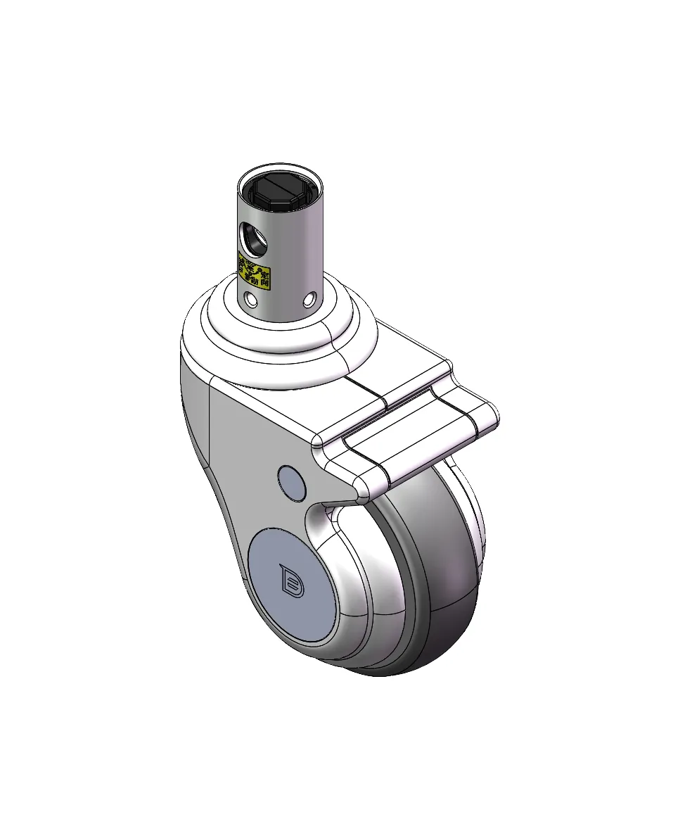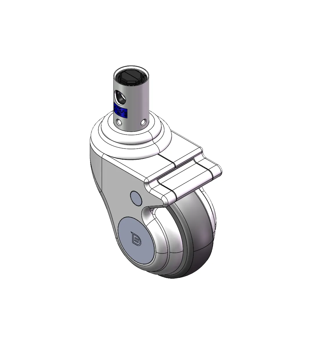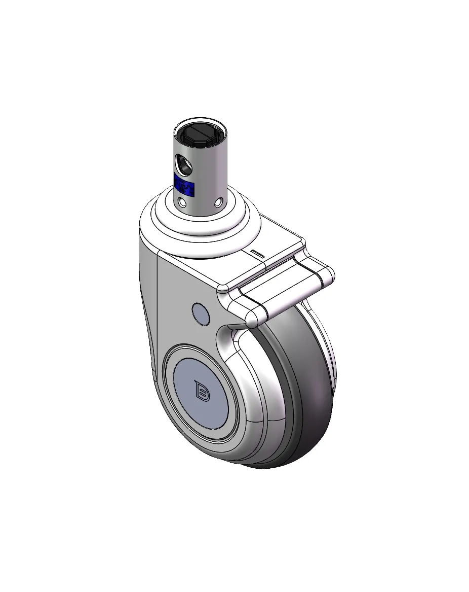 Short Stem Central Locking, Total Brake or neutral castor. Single Bolthole Studded Riveted foot Surface Zine-Plated, Mounting Type - Single Bolthole Impact resistant High-quality Impact Resistance Polypropylene Wheel Center,High-Quality Thermoplastic Rubber (TPR) Wheel Tread Pearl grey, Bearing - Ball Bearing.