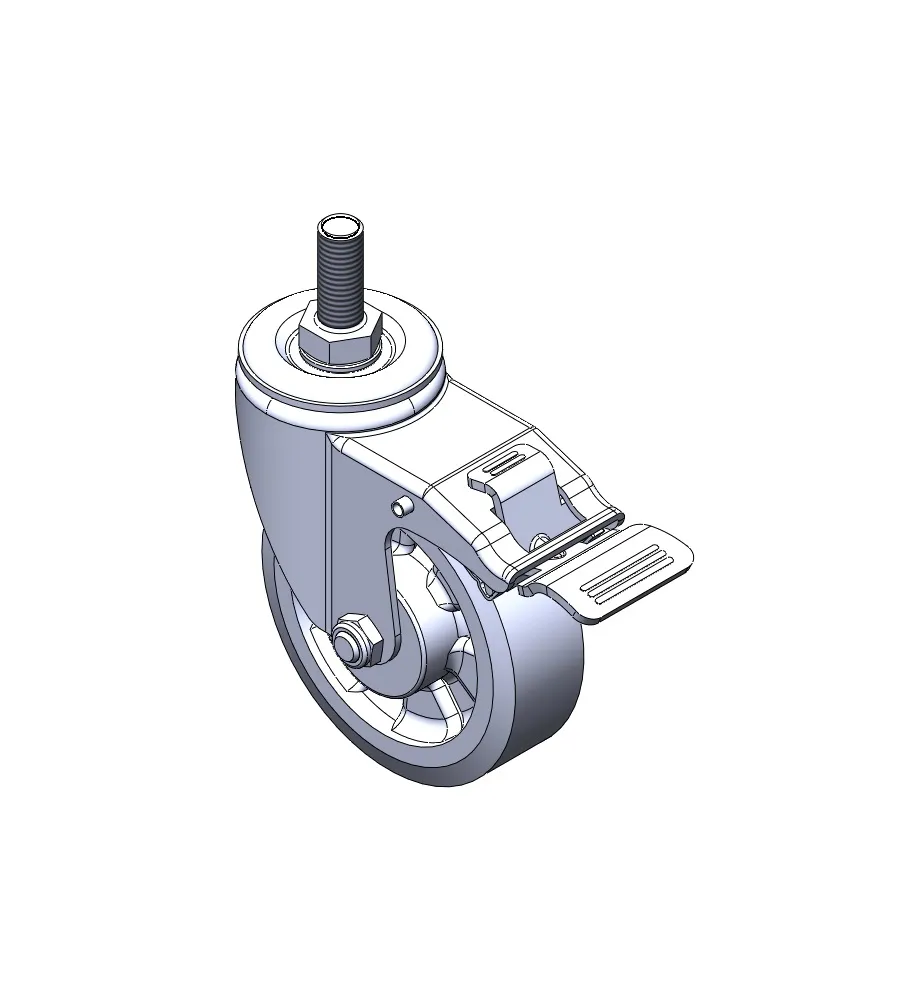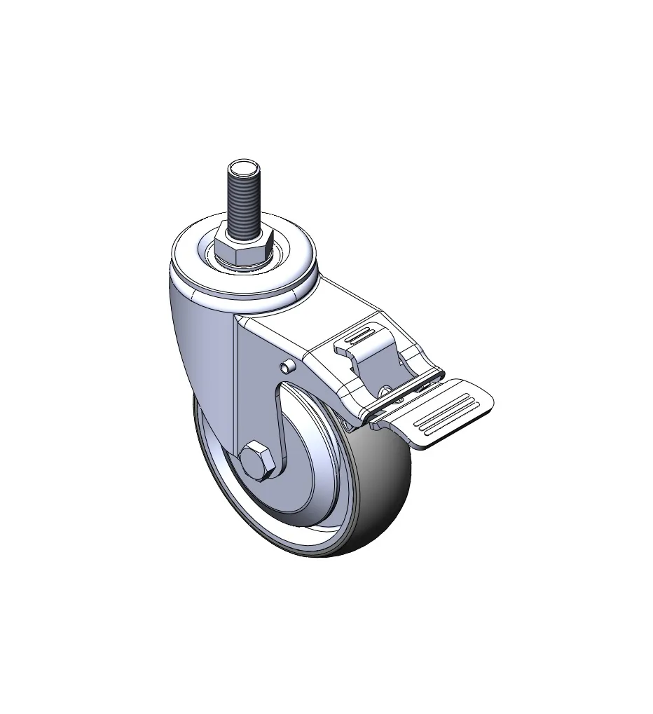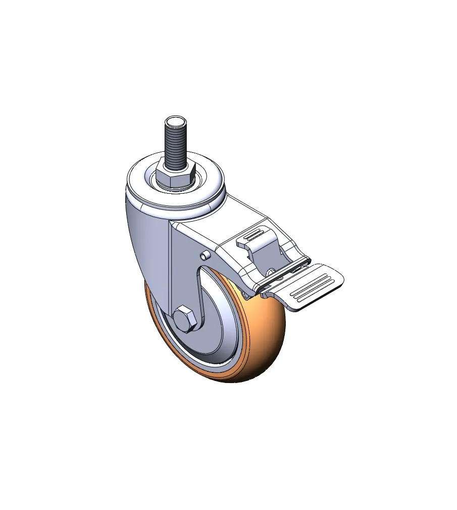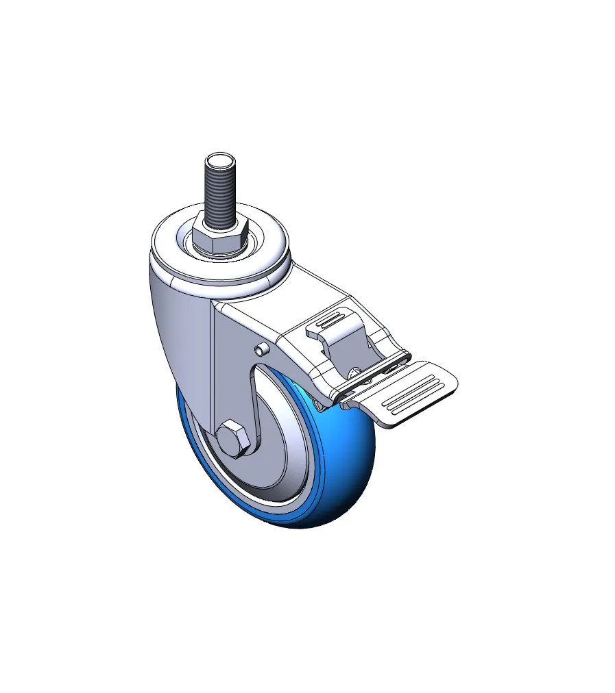 Casters with a Total Brake and With locking system. Threaded Stem, Riveted, Stamping Fork—1/2-12" UNCs